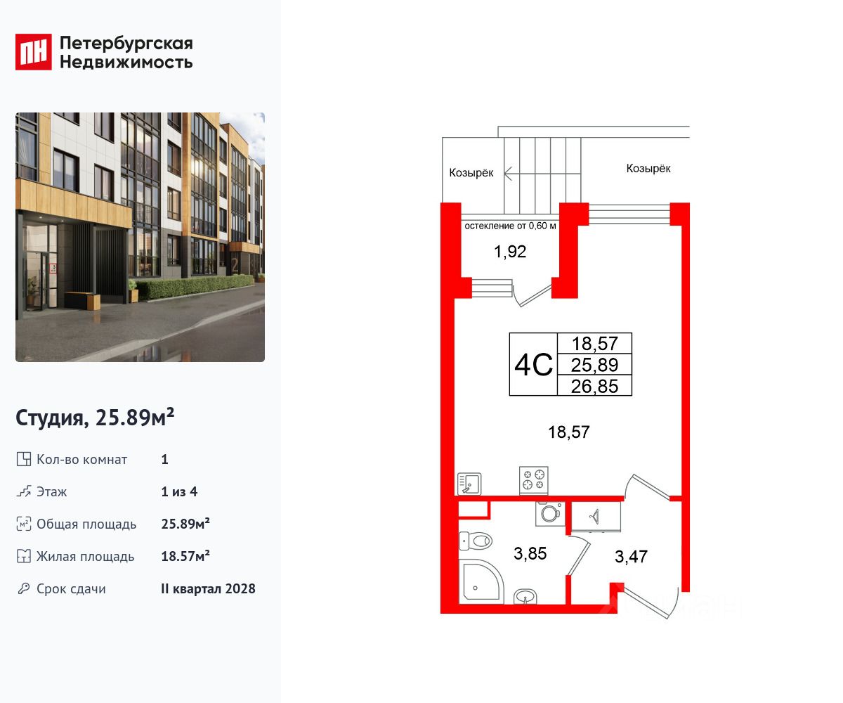 Общая площадь25,89 м2