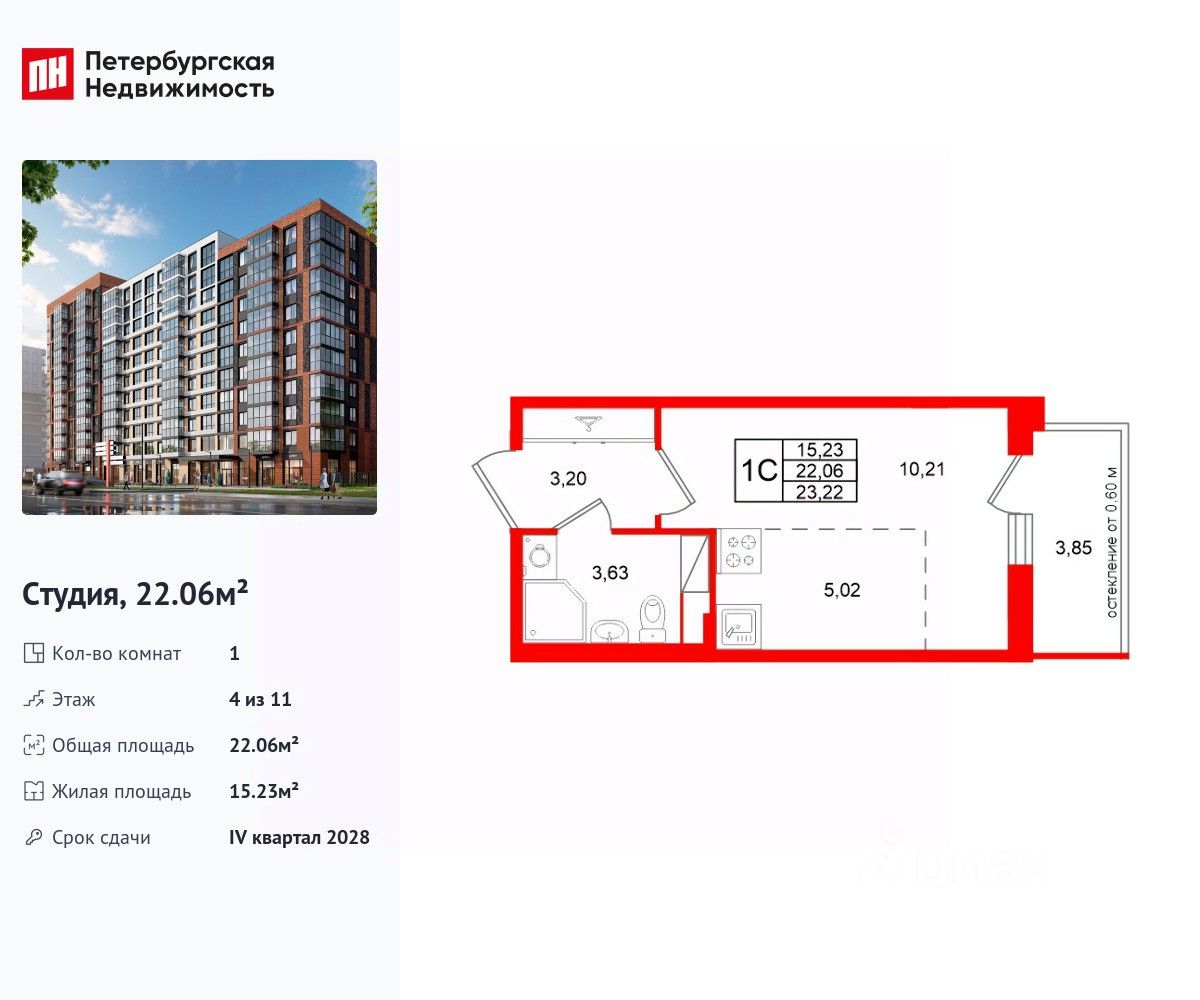 Общая площадь22,06 м2