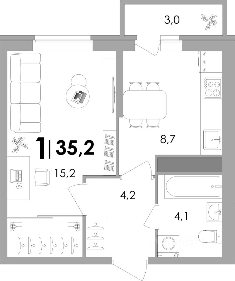 Квартира в эко-квартале комфорт-класса плюс ''Есенинские поля'': • Кирпичный дом с панорамным остеклением с 5 этажа. • Закрытая территория с круглосуточной системой видеонаблюдения. • Рядом ТЦ ''Есенин'' и термальный комплекс ''Новые Термы'' с бассейнами. • Порядок на территории поддерживает собственная управляющая компания. • Умные, развивающие детские площадки и спортзал под открытым небом. • Зелёный двор-парк и лаундж-зоны для отдыха на природе. • Филиал городской поликлиники. • Безбарьерная среда для мам с колясками, пожилых и маломобильных людей: вход с уровня земли, просторный проходной лифт. • Скейт площадка. • Детский сад ''Новые дети''.