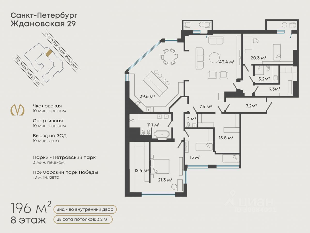 Идеальное предложение для большой семьи, ценящей безупречное качество жизни: приватность закрытого комплекса, авторскую архитектуру, продуманную до мелочей планировку и статус самой зеленой части исторического центра.