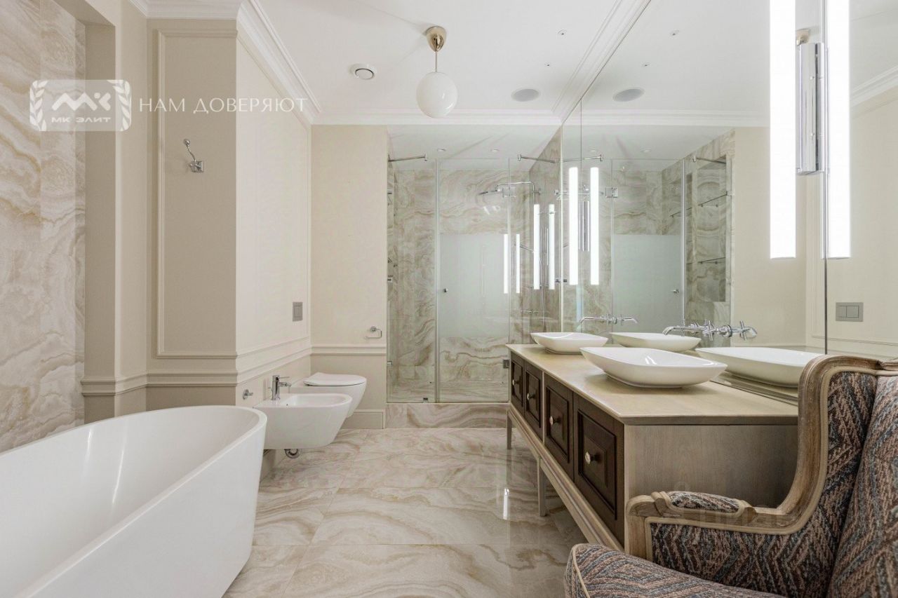 Три санузла. Удобно оборудованы отдельная постирочная и дополнительные гардеробные зоны.