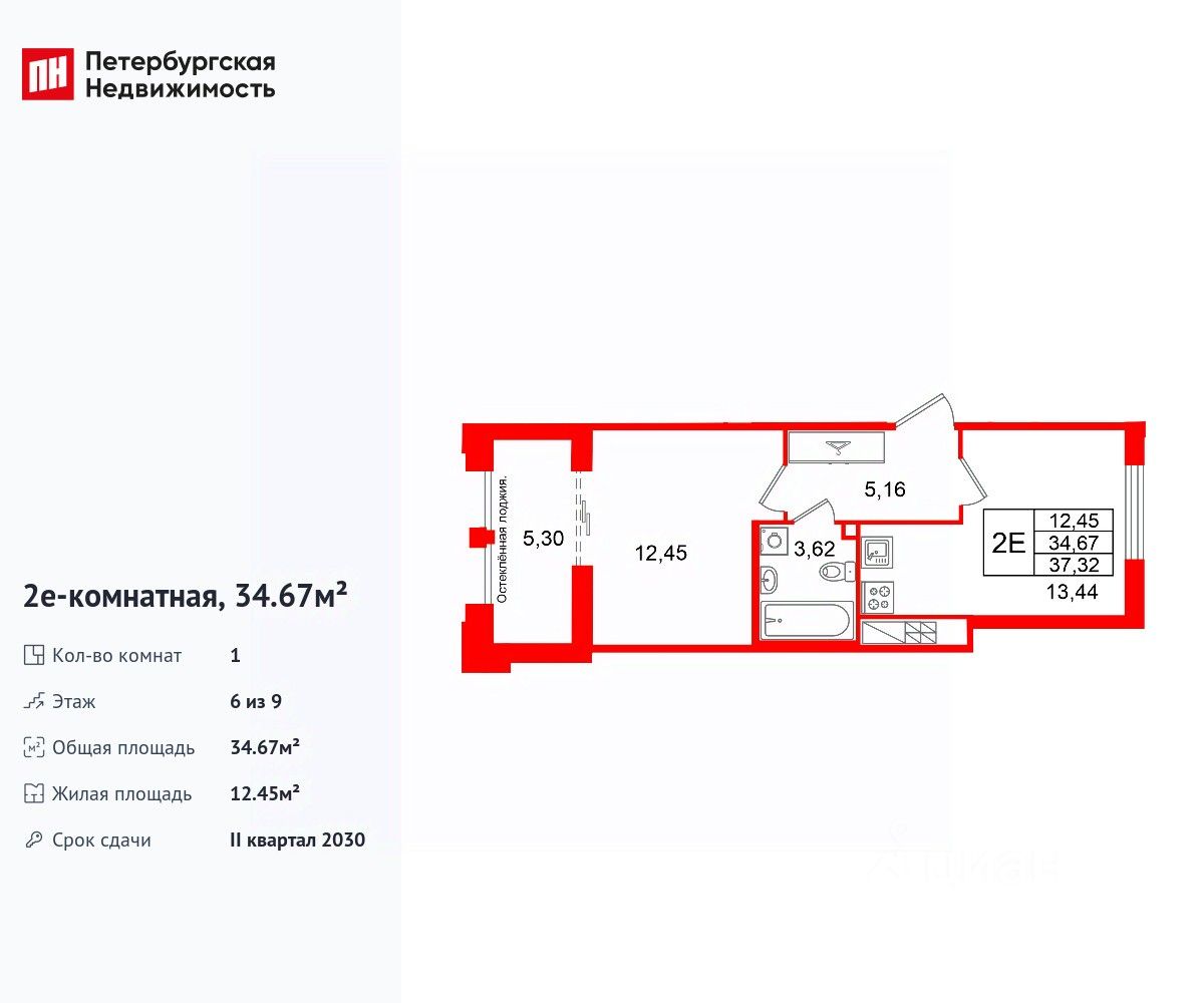 Удобная, классическая, функциональная европланировка, большая кухня-гостиная 13.44 м², просторная прихожая 5.16 м². Общая площадь квартиры - 34.67 м², жилая 12.45 м², высота потолка 3 м.