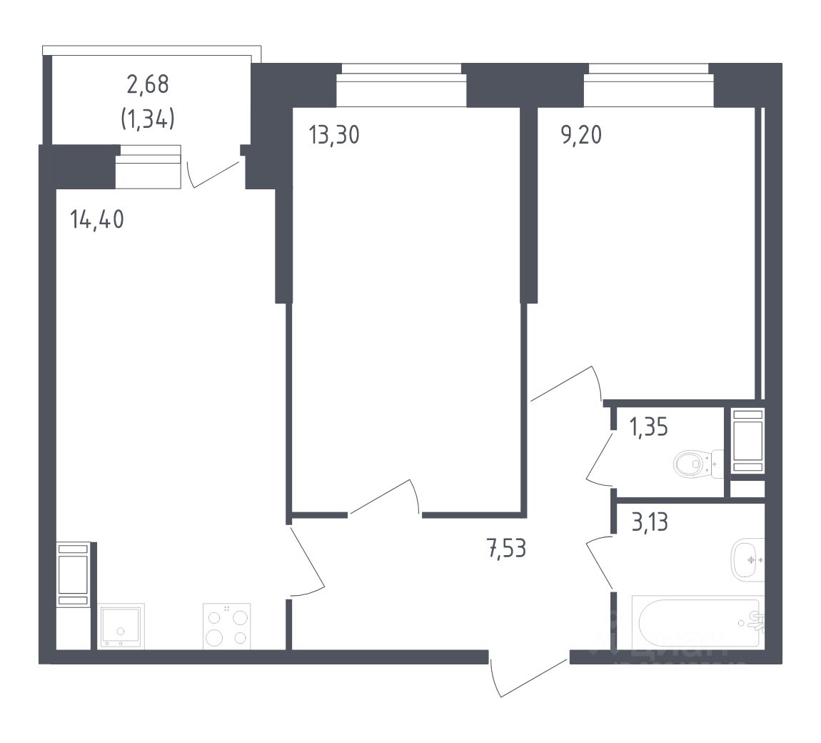 Строим кварталы для жизни с заботой о будущем. Предлагается 2-комнатная квартира комфорт-класса площадью 50,25 кв.м в корпусе 39 на 14-м этаже, в жилом комплексе ''Живи! В Рыбацком''.