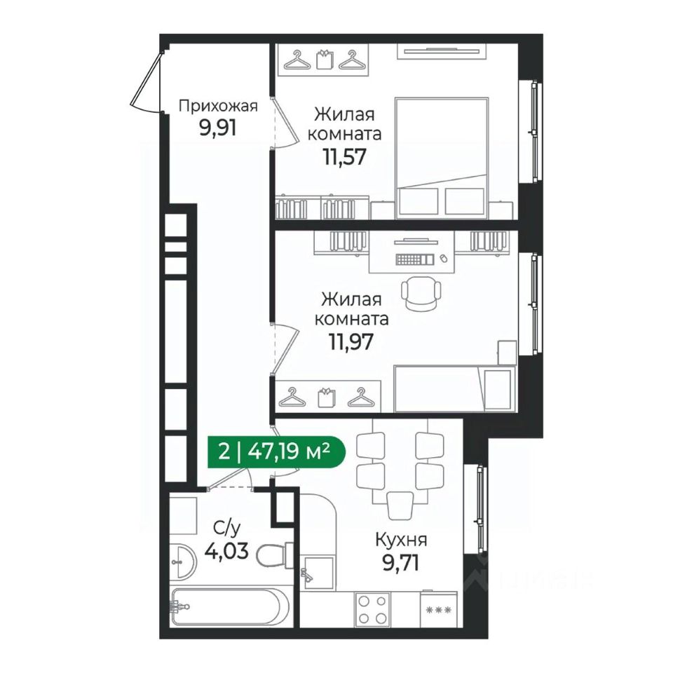 Общая площадь47,19 м2