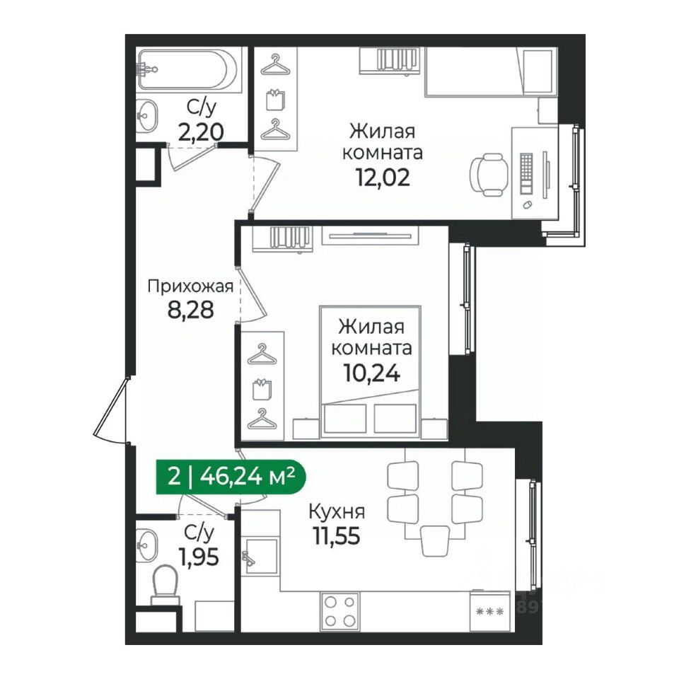 Общая площадь46,24 м2