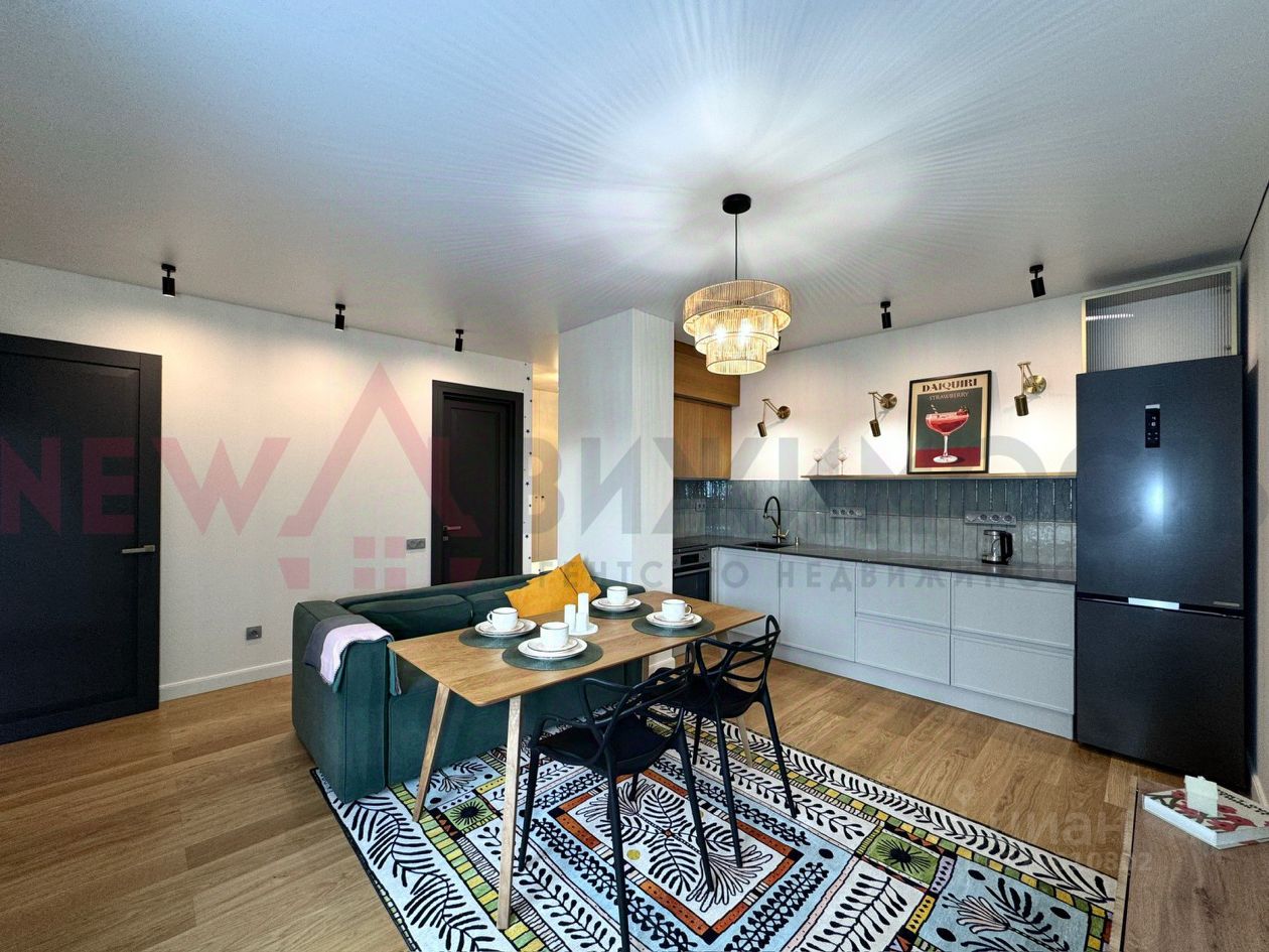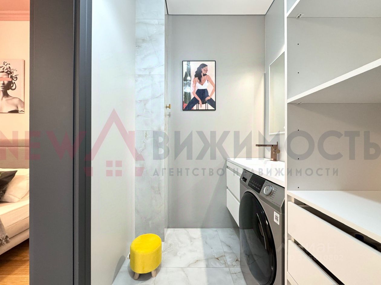 О квартире • 2 комнаты, общая площадь 60,08 м², жилая — 26,59 м². • Уникальный дизайн: стильный и продуманный ремонт с использованием качественных материалов. • Просторная уютная кухня-гостиная 21,56 м² — отличное место для встреч с родными и друзьями. • Одна из спален имеет просторную гардеробную с постирочной зоной и выход на лоджию. • обустроенная лоджия для приятных вечеров • установлены датчики протечек • теплый пол на лоджии и в санузле • во всей квартире на полу- инженерная доска • увеличенные окна, распахиваются обе створки, квартира очень светлая и солнечная • видеодомофон, мастер выключатель • 9 этаж из 14 — оптимальная высота. • Вся мебель и техника остаются — можно заезжать сразу после сделки.