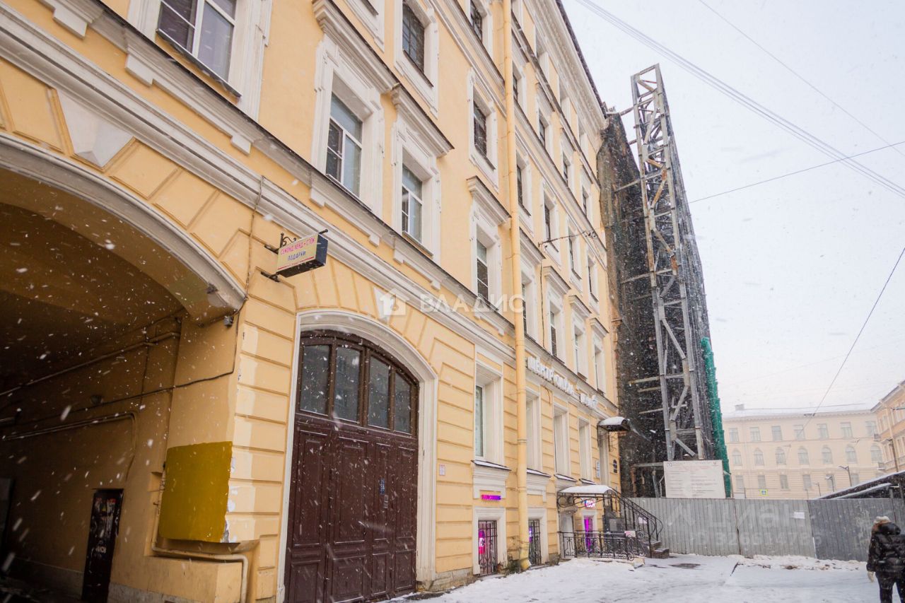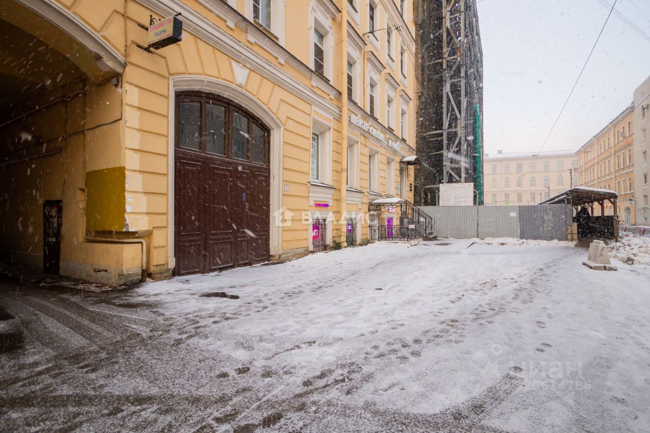 Россия, Санкт-Петербург, Бронницкая улица, 5. Помещение свободного назначения на первом этаже пятиэтажного кирпичного здания, построенного в 1872 году. Общая площадь составляет 43 кв. м, высота потолков — 3 метра.