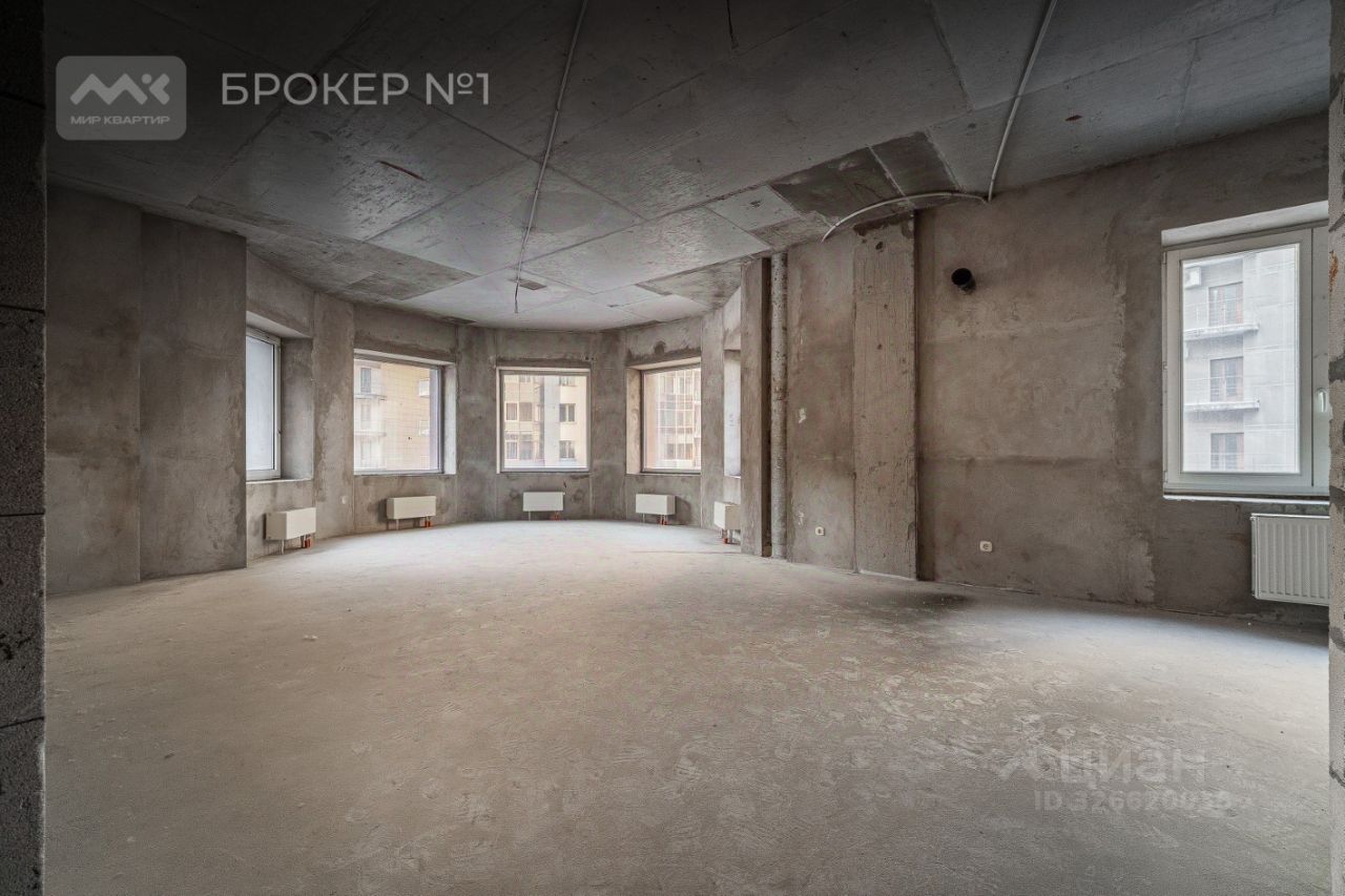 Квартира расположена на 3 этаже, общей площадью 123 кв. м., включает в себя две полноценные изолированные спальные комнаты 25,8 м2+15,2 м2 и просторную, светлую, полукруглую кухню-гостиную с эркером 53,9 м2, холл 16,9 м2, гардеробная 0,8 м2, совмещенный санузел 8 м2, гостевой санузел 2 м2 . высота потолка 3м.