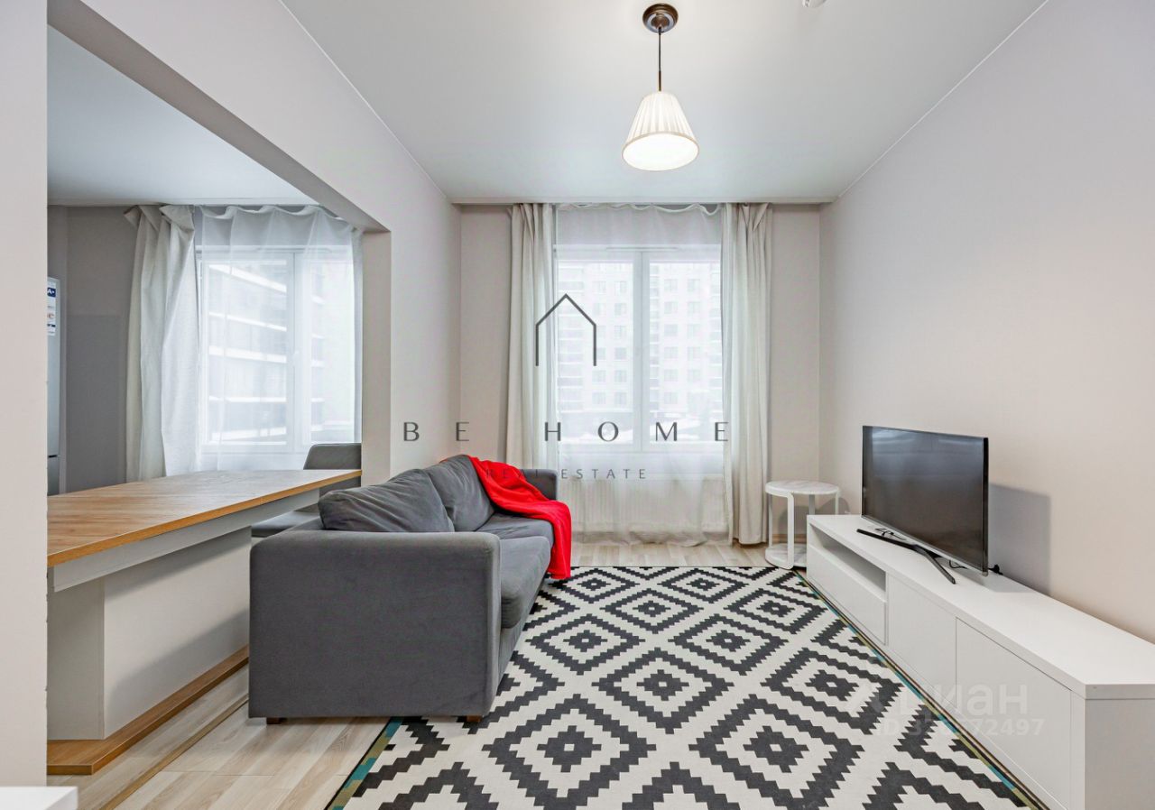 Большая кухня-гостиная, отдельная спальня с выходом на лоджию, две гардеробные и совмещенная ванная комната.