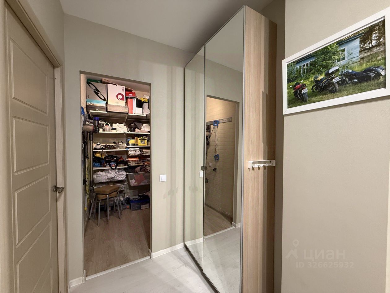 В квартире оставляют: кухонный гарнитур со встроенной техникой, кровать и шкаф, систему хранения в гардеробной, мебель в коридоре, бойлер.
