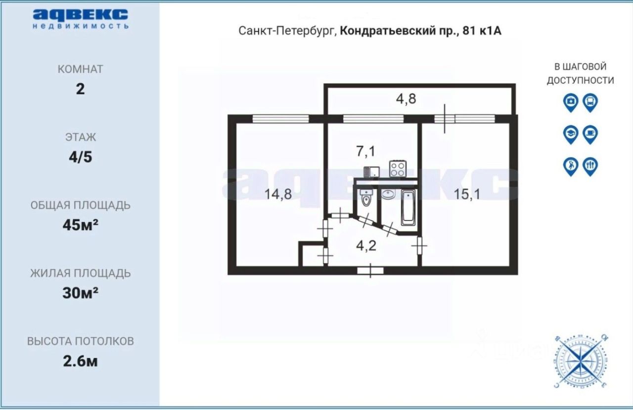 ID: 1915999 Двухкомнатная квартира с ''умным'' хранением и отличным видом в просторный зелёный двор. Идеальное сочетание тишины, комфорта и готового ремонта. Продуманная планировка: Две изолированные комнаты обеспечат приватность всем членам семьи. Из уютной спальни есть выход на просторный балкон, где можно обустроить зону отдыха. Системы хранения: Забудьте о громоздких шкафах: в спальне выделена отдельная закрытая гардеробная, а в прихожей встроен вместительный шкаф до потолка для сезонных вещей. Качественный ремонт: Делали для себя с полной заменой электрики. По всей квартире уложен премиальный ламинат единым полотном без порожков — это выглядит эстетично и облегчает уборку. Атмосфера: Квартира очень светлая и ухоженная. Расположение и дом: Тишина и покой: Дом спрятан в глубине двора, никакого шума дорог и пыли. Парковка: Огромное преимущество — у дома всегда есть свободные места для вашего автомобиля. Инфраструктура: Всё под рукой. В шаговой доступности школы, детские сады, поликлиники и сетевые магазины. Экология: Район утопает в зелени, рядом много парков для прогулок и пробежек. Юридическая чистота и быстрый выход на сделку: Прозрачная история: Квартира более 20 лет в собственности одной семьи (приватизация, затем договор дарения внутри семьи). Готовность: В квартире никто не зарегистрирован. Возможна передача ключей прямо в день сделки.