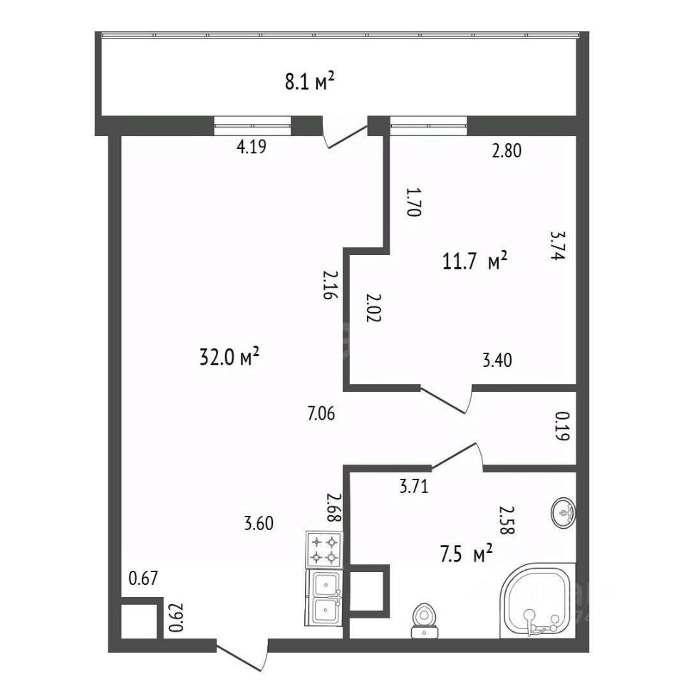 Ключевые особенности квартиры: • Продуманная планировка: Просторная кухня-гостиная 32 кв. м — идеальное место для семейных встреч и дружеских вечеринок, отдельная комната 12 кв. м для уединения и комфортный санузел 7,5 кв. м. • Высота потолков 3,2 м создаёт ощущение простора и лёгкости, а улучшенная черновая отделка позволяет вам реализовать свои дизайнерские идеи.