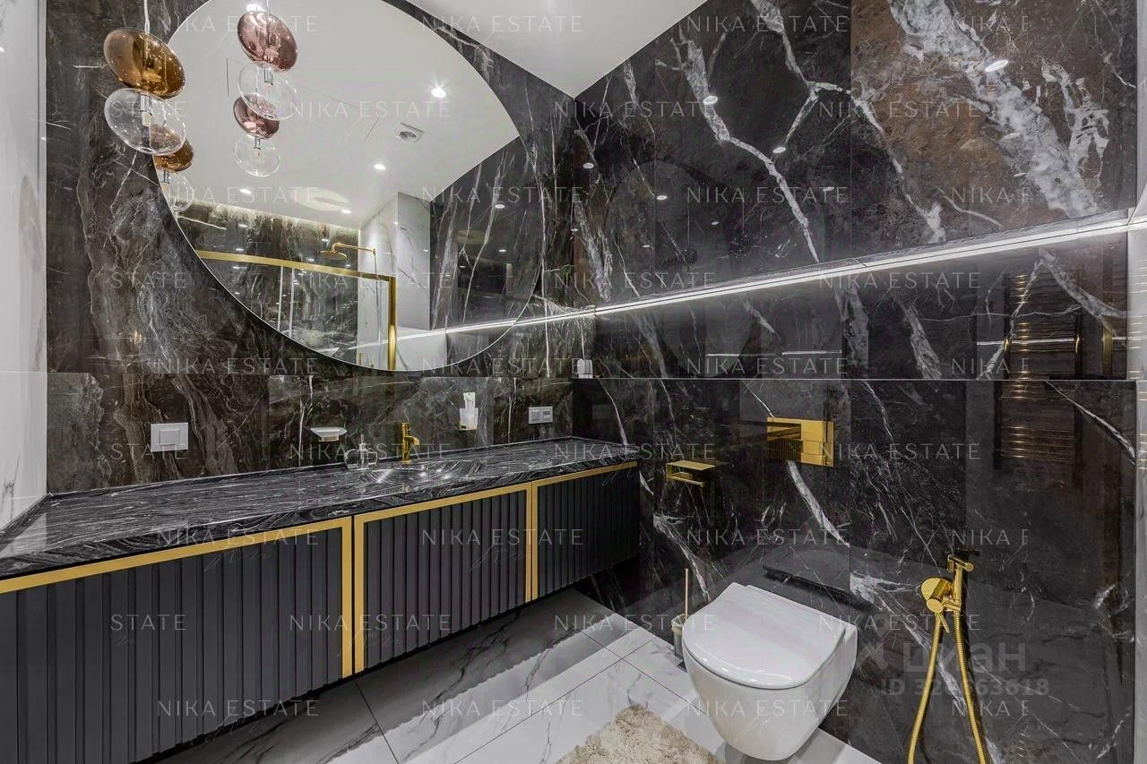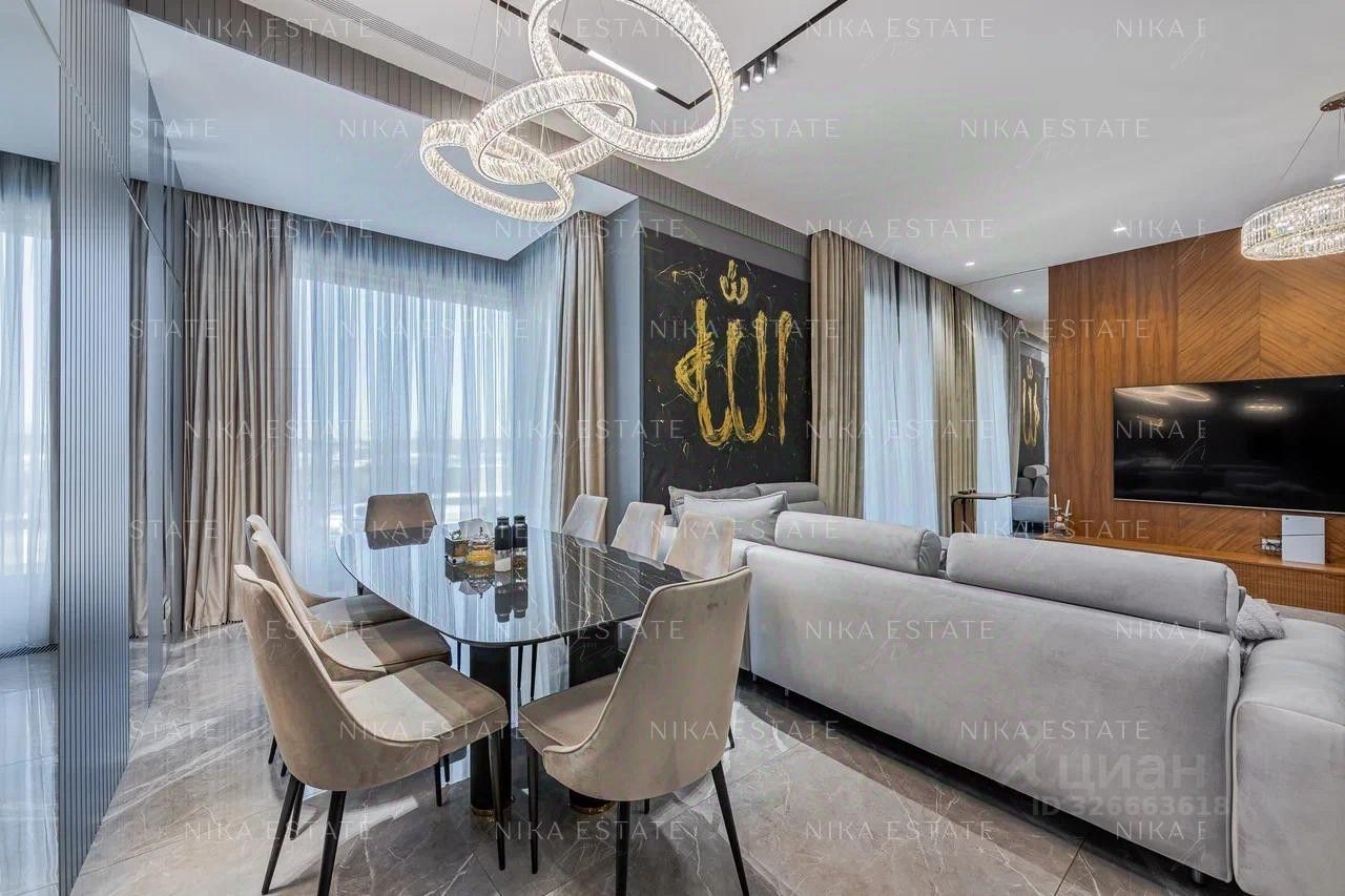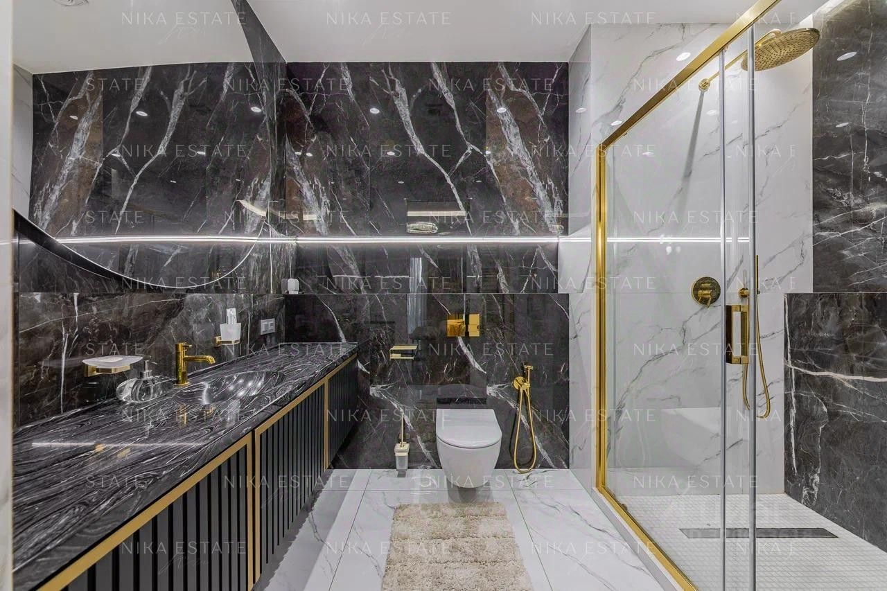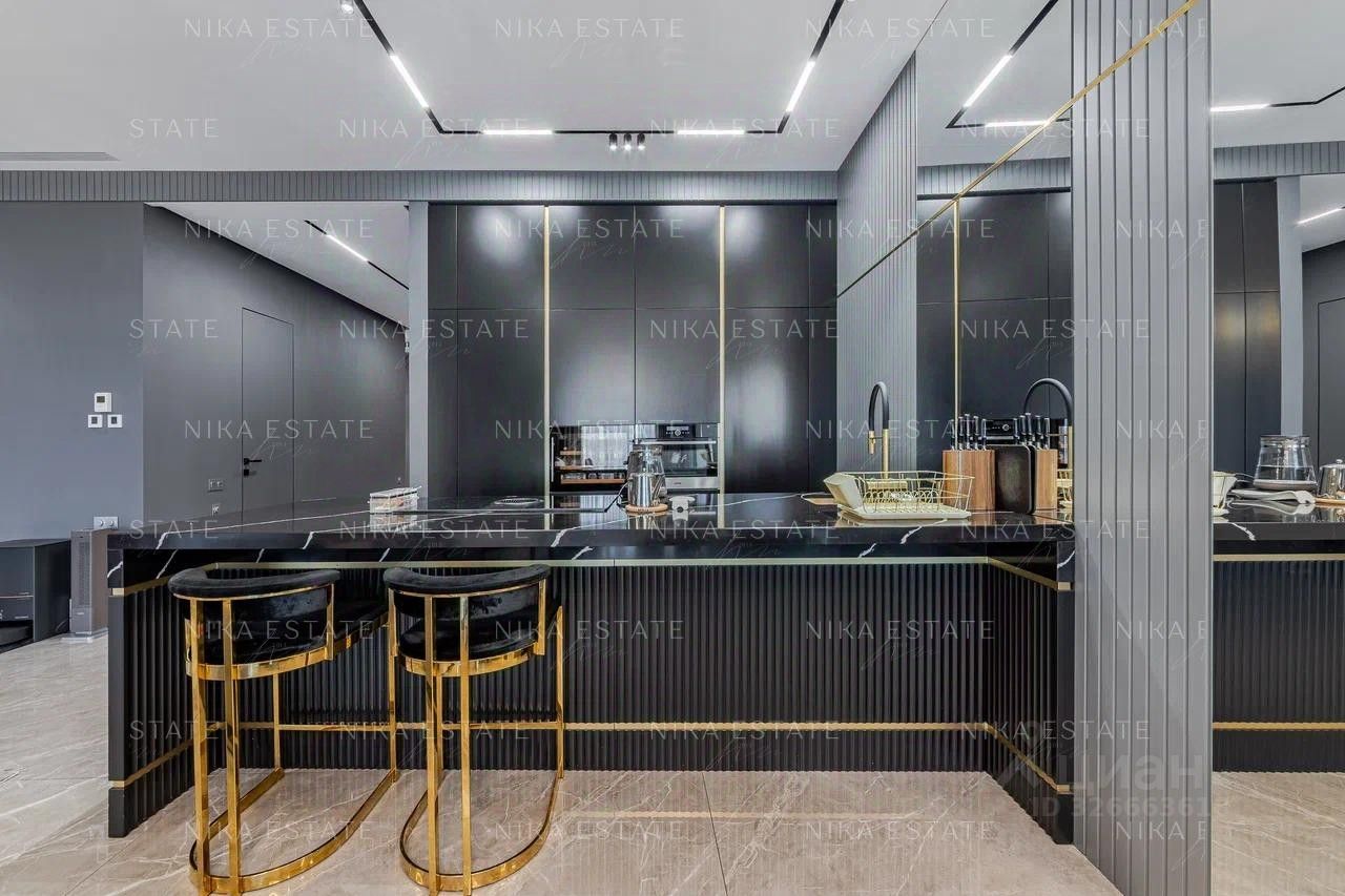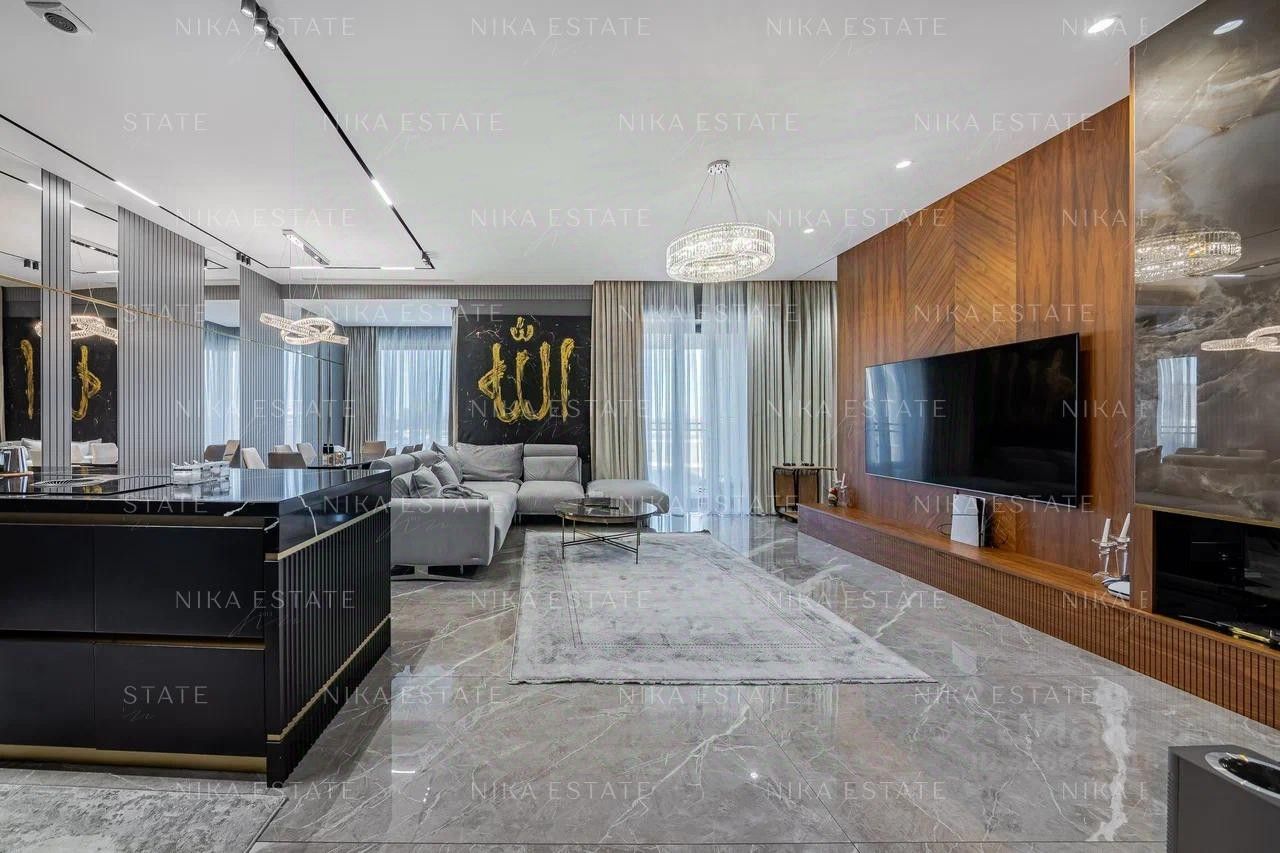 -просторная кухня-гостиная с просторной террасой укомплектована дизайнерским диваном и обеденным столом с мраморной столешницей переходящая в уютную зону отдыха для всей семьи обставлена стильной и дорогой мебелью, которая подчеркнет вашу индивидуальность , -современная кухня с итальянскими фасадами, встроенной техникой и зоной для приготовления пищи, - 2 уютных мастер-спальни со своим санузлом и большими балконами -террасами - 2 гардеробных - гостевой с/у -хозблок с постирочной