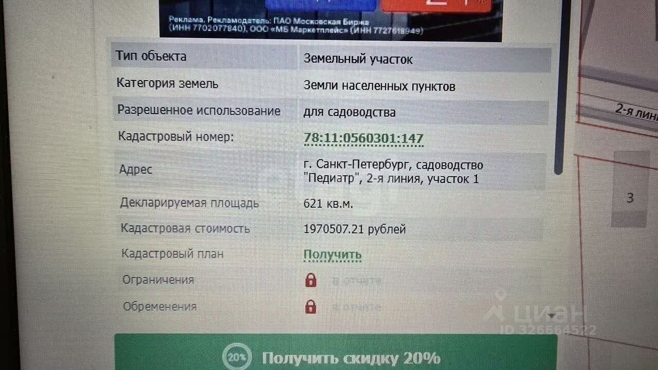 Земельный участок в черте города у реки Охта | ИЖС | 6,2 сотки