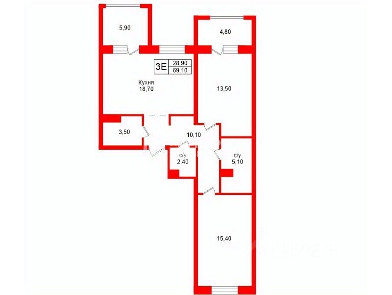 Квартира имеет удачную планировку: двухсторонняя, все помещения правильной формы. Площадь квартиры- 69,1кв.м (кухня-гостиная - 18,7 кв.м и две спальни). Две большие утеплённые функциональные лоджии (5,9 и 4,8 кв.м) с заменой остекления, одна оборудована под кабинет, вторая как зона отдыха). Окна дерево-алюминиевые фирмы skaala. Общая площадь с учётом лоджий составляет 80 кв.м. В квартире 2 санузла. В гардеробной установлена система хранения, а также есть встроенные места для хранения в прихожей. В квартире выполнен качественный ремонт, стены выровнены и окрашены ( гостиная, коридор, спальня).