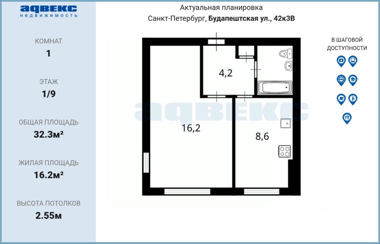 ID: 1916049 Готова к продаже прекрасная,очень теплая 1 комн квартира во Фрунзенском районе с отличной планировкой,большой кухней и комнатой правильной формы. Общая площадь: 32.3 кв.м. ОБ ИНФРАСТРУКТУРЕ ДОМА Очень развита, 8 минут пешком до станции метро пр. Славы. До центра города 18-20 минут на метро и вы в центре всех исторических и культурных памятников. Рядом с домом несколько школ, детские садики, фитнесс-центр, в районе множество сетевых магазинов,кафе,пекарни, рестораны,аптеки,транспорт в другие районые города. О ДОМЕ: Кирпичный добротный дом с толстыми стенами,широкими подоконниками. ДОМ расположен внутри зелёного обжитого микрорайона,поэтому нет шума машин и улицы.Низкие коммунальные платежи,все соседи спокойные и адекватные люди. О КВАРТИРЕ: Квартира светлая,с очень хорошей аурой. Комната правильной прямоугольной формы,окна выходят во двор, нет шума с улиц. Квартира требует косметического ремонта, вся мебель и техника,которые вы видите на фото,остаются новому собственнику. О СОБСТВЕННИКАХ Два взрослых собственника,которые будут присутствовать на сделке. О СДЕЛКЕ И ДОКУМЕНТАХ Покажем полную стоимость в договоре. Долгов,обременений и др. ограничений нет,мат капитал не использовался. ПРЯМАЯ ПРОДАЖА, документы полностью готовы,а это значит,что у вас будет быстрая,комфортная и безопасная сделка. Звоните,отвечу на все вопросы,бесплатно проконсультирую по сделке,быстро организую просмотр квартиры.