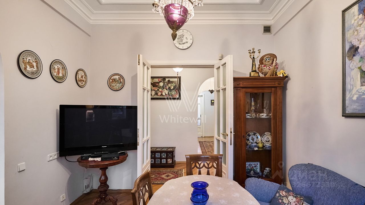 Высота потолков 3,2 метра. Квартира укомплектована мебелью и бытовой техникой. Установлена система индивидуального кондиционирования. Окна ориентированы на две стороны света, открываются виды на Тверскую площадь и в благоустроенный двор.