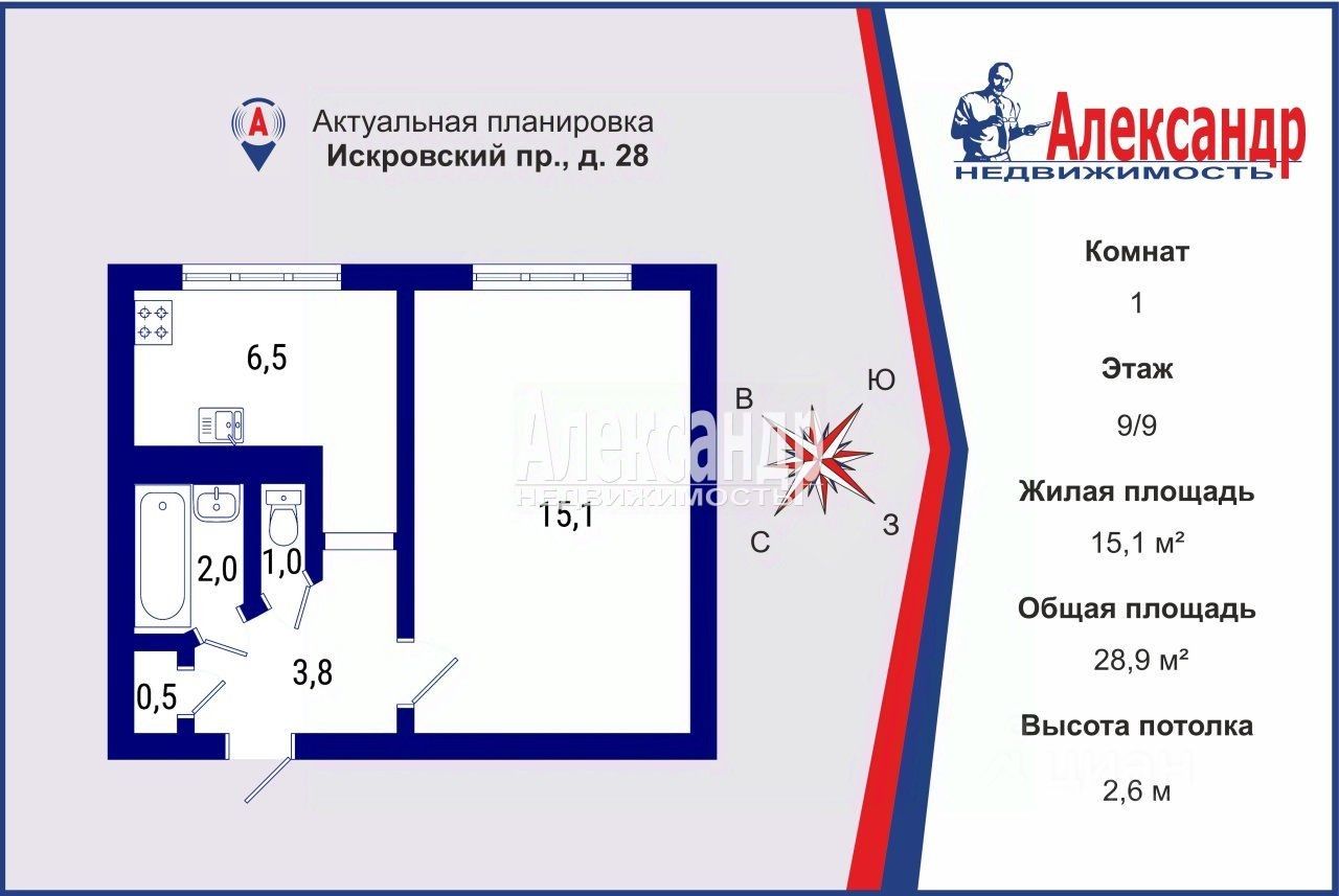 продам 1-к, Искровский проспект, 285 900 000 ₽