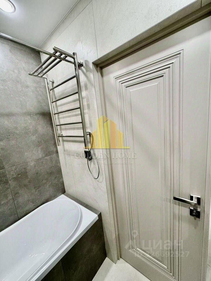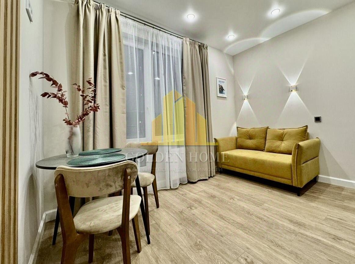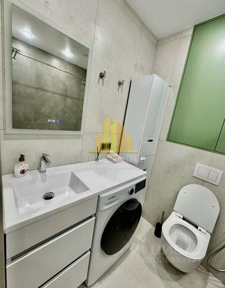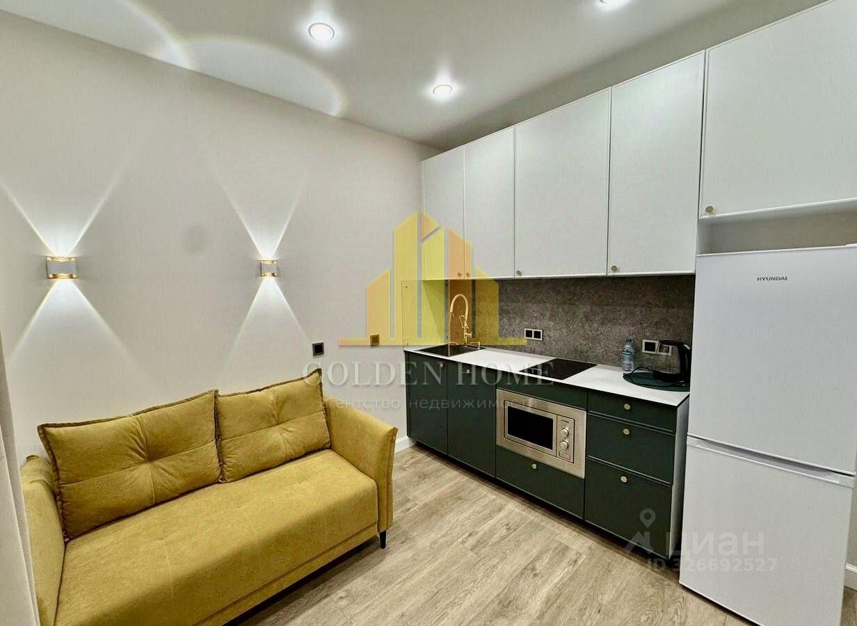 Кухня: Просторная, с индукционной варочной панелью, посудомоечной машиной, холодильником, вытяжкой и СВЧ. Комната: Удобная кровать с прикроватным бра, комод со встроенным рабочим столом. Санузел: Совмещённый, с полноразмерной ванной, гигиеническим душем, полотенцесушителем и зеркалом с подогревом.