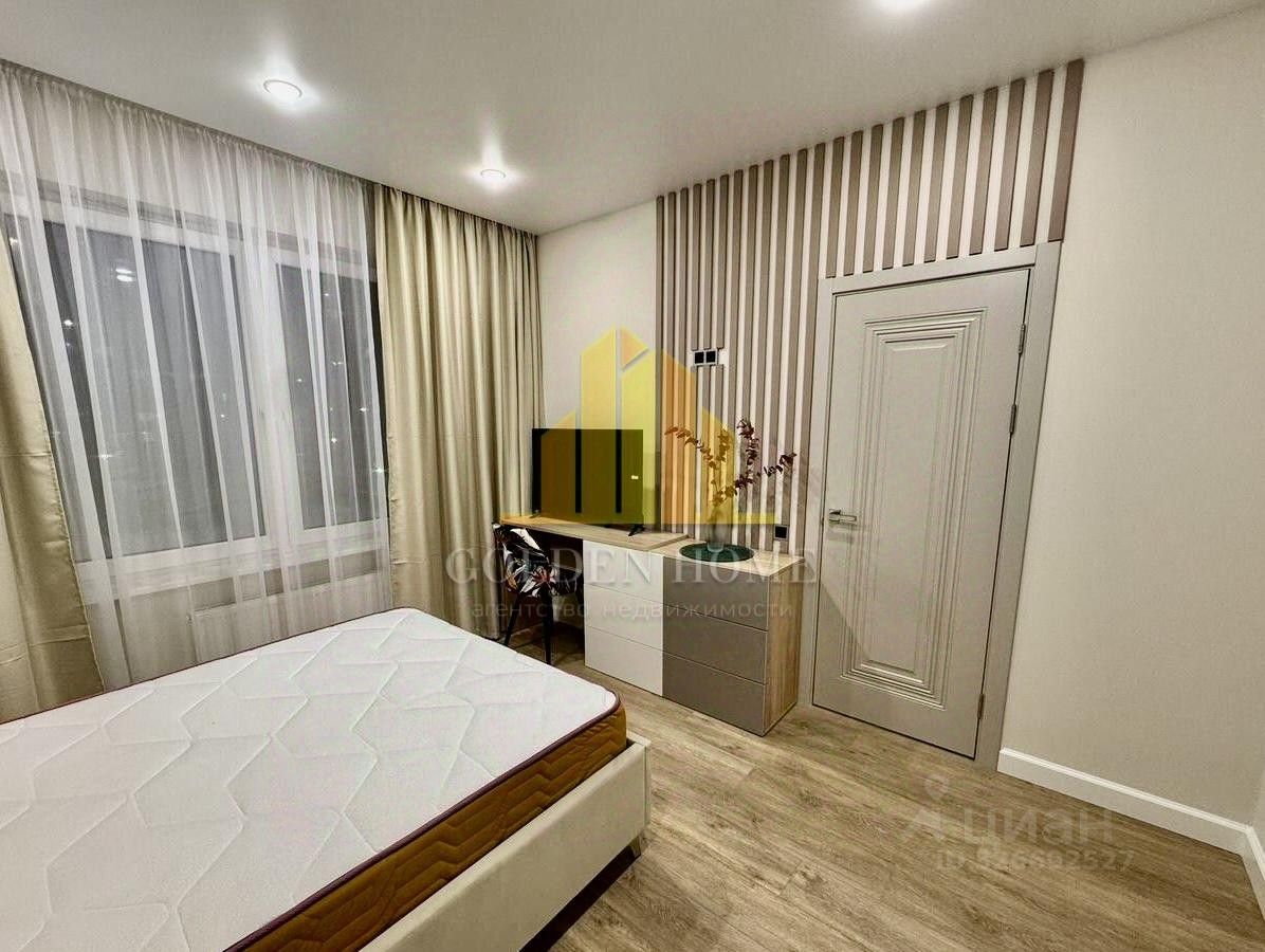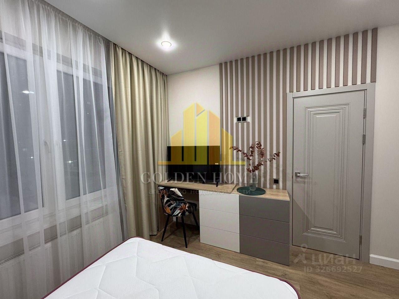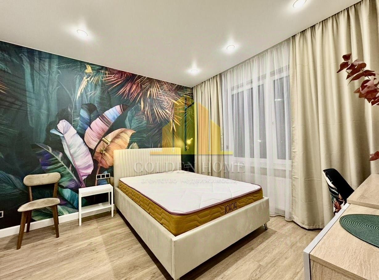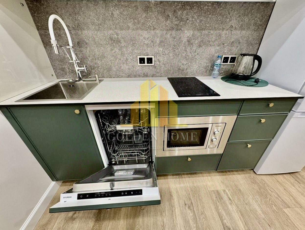 Кухня: Просторная, с индукционной варочной панелью, посудомоечной машиной, холодильником, вытяжкой и СВЧ. Комната: Удобная кровать с прикроватным бра, комод со встроенным рабочим столом.