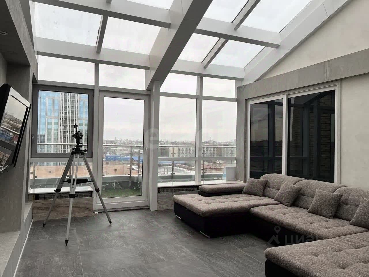 Преимущества квартиры: • Просторная планировка: Квартира включает кухню-гостиную, гостевой санузел с душевой, спальню с лоджией, малую гостиную-террасу с выходом на балкон, а также мастер-спальню с гардеробной и отдельным санузлом. • Особенности дизайна: В квартире высокие потолки, панорамные окна, а также светлая гостиная-терраса с уникальным стеклянным потолком. В ванной комнате при мастер-спальне установлено джакузи. • Качество ремонта: Ремонт был выполнен с использованием качественных и износостойких материалов, что гарантирует долговечность и комфорт. Все помещения выполнены в одном стиле, создавая уютную атмосферу.