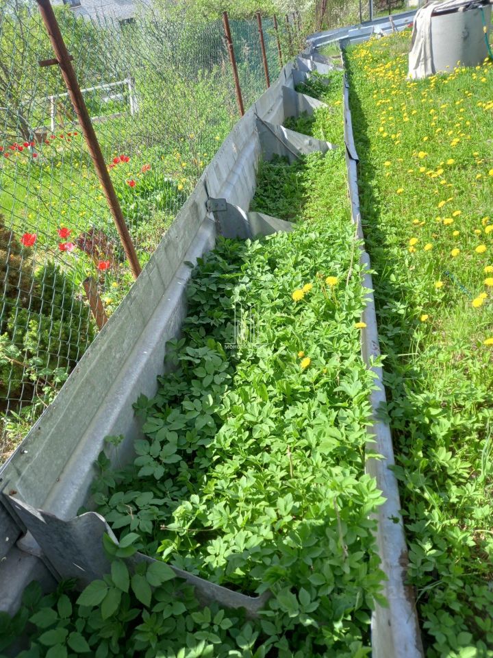 Проводка в доме поменяна 3 года назад на современную. Участок квадратной формы, огорожен с трех сторон надежными вечными грядами из оцинкованного толстостенного железа. Из него же ограждение водоема и основание теплицы. Накопительный бак для воды. Въезд на 3 авто. Это СНТ появилось в 1990 году, от БМП (Балтийского морского пароходства). Оно задумывалось как экспериментальное, для постоянного проживания граждан. На данный момент много людей проживает постоянно. Нет проблем с электричеством, организована мусорная площадка. Рядом круглогодичный магазин. Детей в школу от Ропшинского шоссе забирает школьный автобус.
