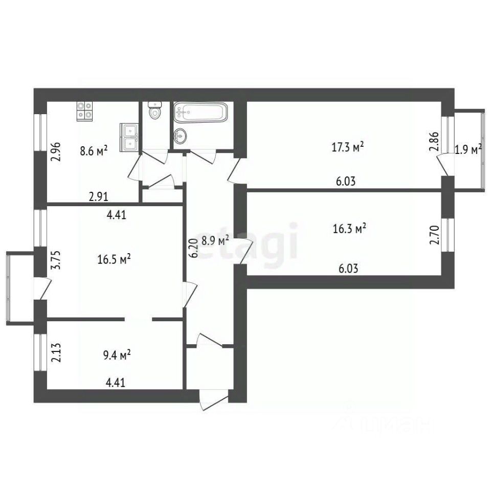 Основные характеристики квартиры: - Количество комнат: 4 - Общая площадь: 85 кв.м - Планировка: на две стороны - Санузел: раздельный - Ремонт здания: капитальный ремонт проведен 5 лет назад. Железобетонные перекрытия.