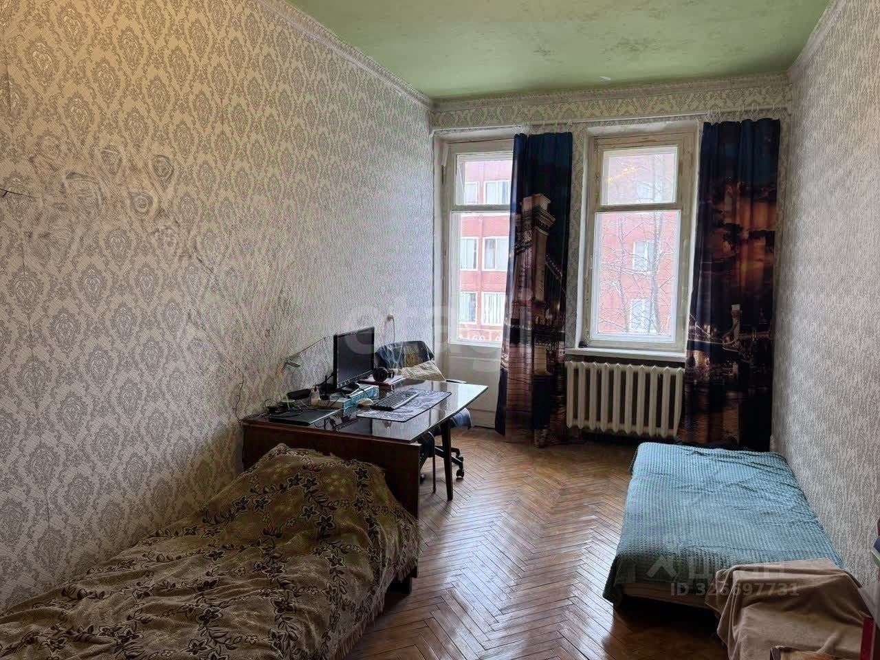 В продаже 2 комнаты в 4-х комнатной квартире в Петродворцовом районе Санкт-Петербурга. Комнаты 17,3 м2 и 16.3 м2 - на планировке по правой стороне. Стоимость в объявлении указана за одну комнату.