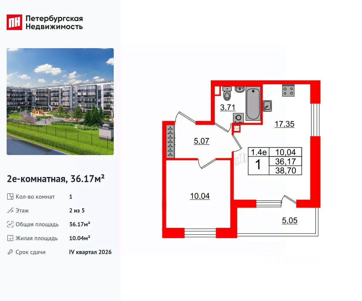Общая площадь36,17 м2