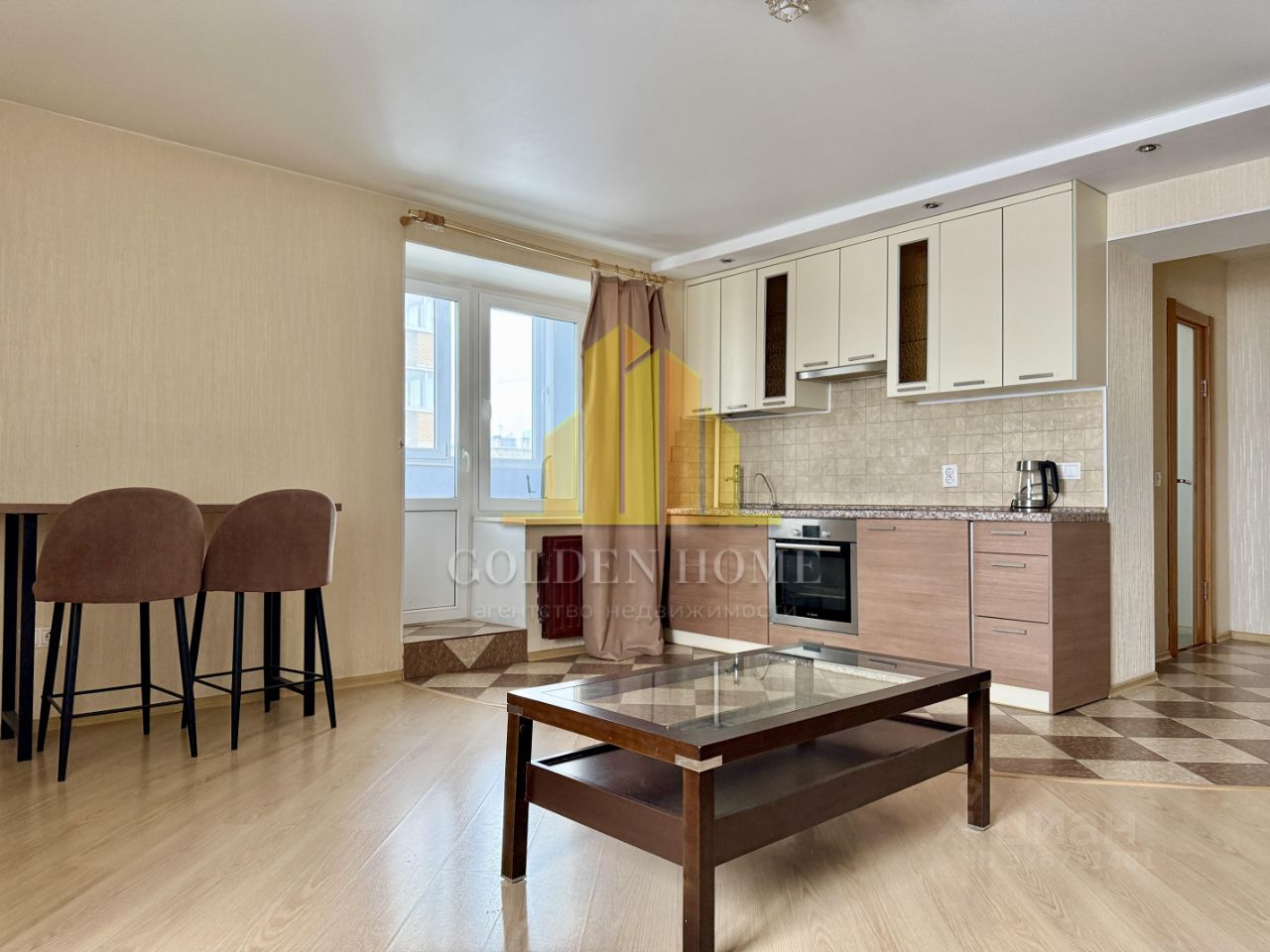 Общая площадь в 35 квадратных метров грамотно организована: уютная жилая зона гармонично сочетается с функциональной кухней. Панорамные окна наполняют пространство светом и открывают приятный вид.