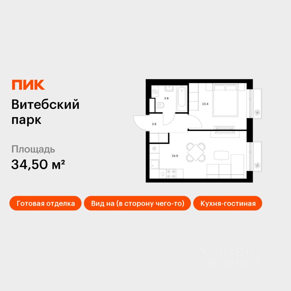 Продаётся 1-комн. квартира площадью 34,5 кв.м на 2 этаже 12 этажного дома (Корпус 7, Секция 1) проекта ПИК Витебский парк. Светлый просторный подъезд на уровне земли, функциональная планировка, большие окна, c отделкой.