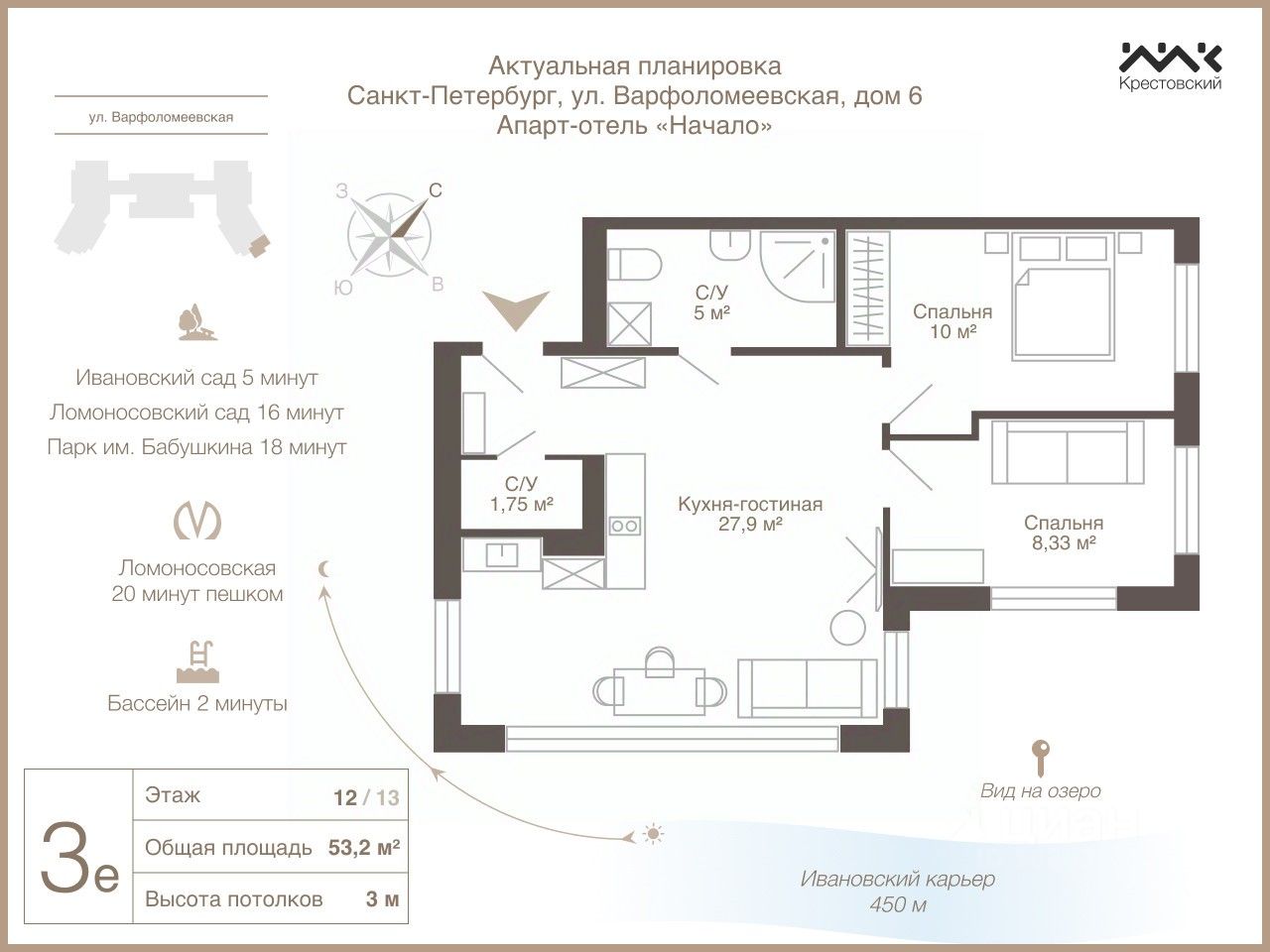 Уникальный вид и статус: Панорамные окна с видом на воду создают исключительную атмосферу и ценность каждый день. Лучшая локация Невского района: Шаговая доступность от метро ''Ломоносовская'', быстрая связь с центром на автомобиле или общественном транспорте. Комфорт и полная безопасность: Вы получаете преимущества апарт-отеля: круглосуточная охрана и ресепшн, видеонаблюдение, контролируемый доступ. Не думайте о бытовых вопросах: На территории работает техническая служба и предоставляются услуги клининга (по отдельному соглашению). Собственная парковка: Для жителей доступна закрытая наземная парковка. Развитая инфраструктура включает кофейни, магазины, спортивные площадки, благоустроенную набережную, парки и школы в пешей доступности.