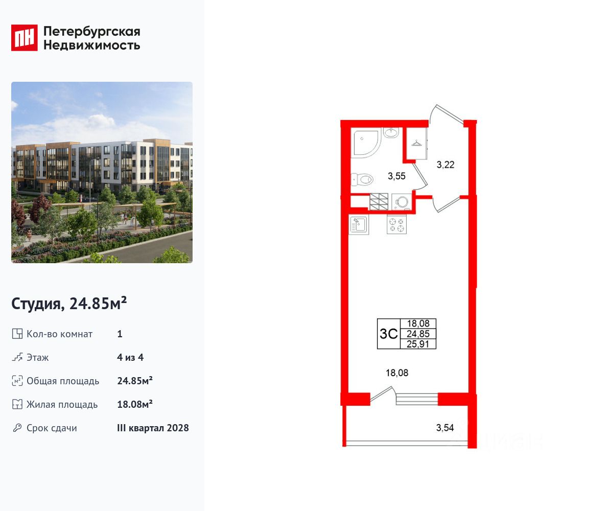 Продается просторная студия от застройщика в жилом комплексе ''Univer City'' в на юге Санкт-Петербурга.
