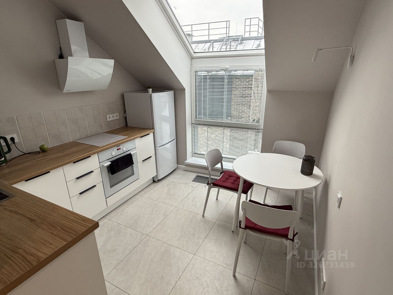 Полностью оборудованная кухня: Электроплита, вытяжка, холодильник, посудомоечная и стиральная машины, раздвижной обеденный стол.