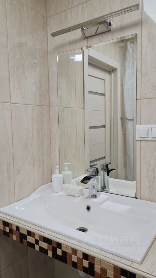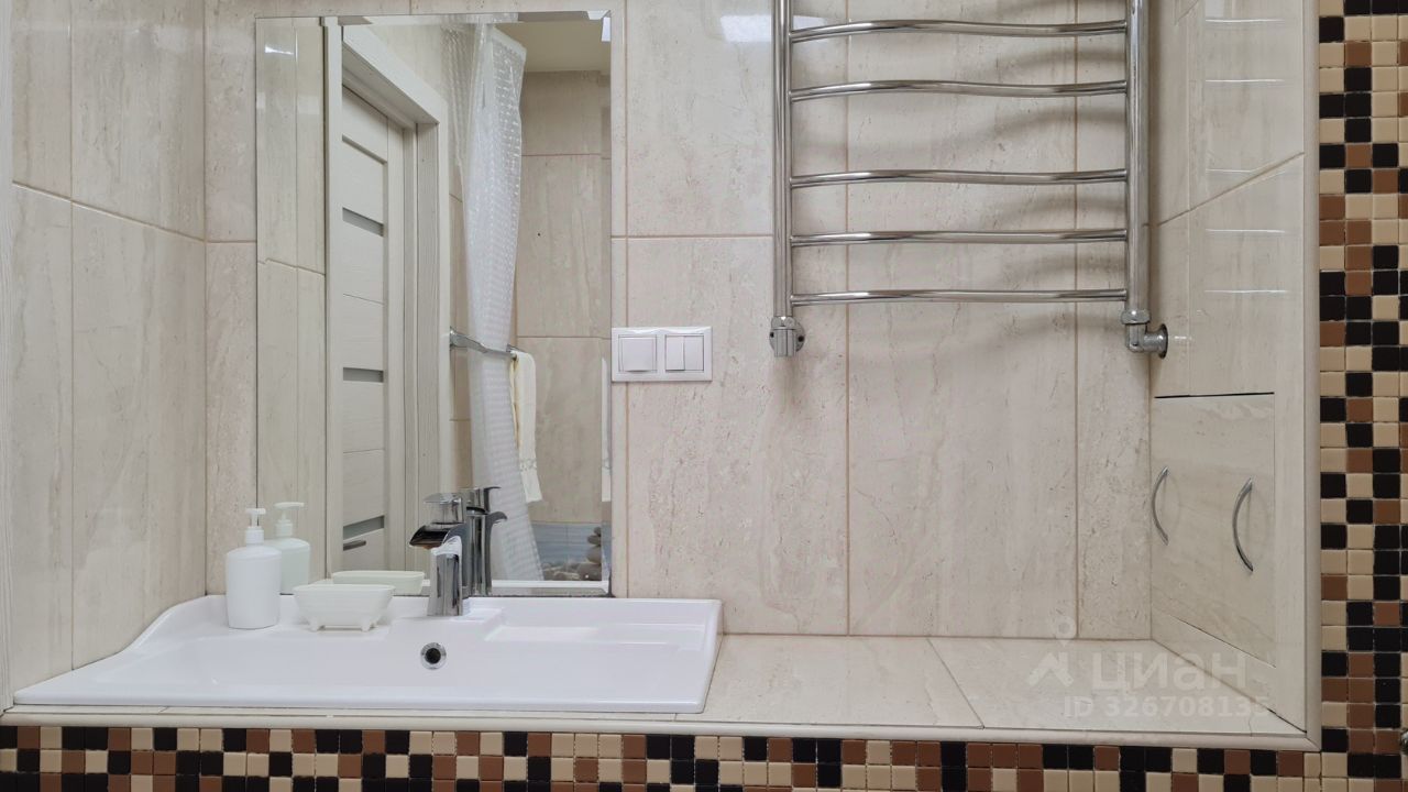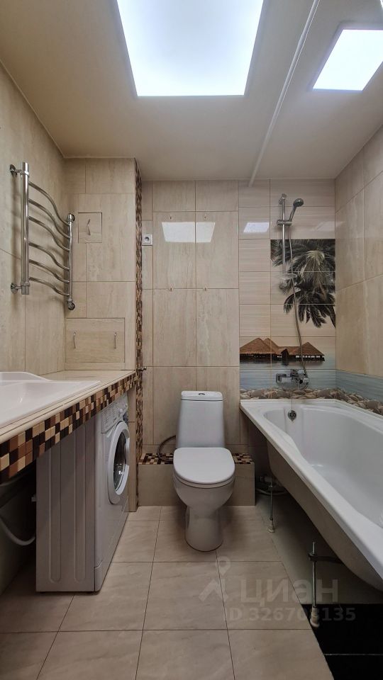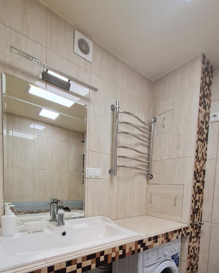 - В ремонте применены дорогие и современные материалы. Глянцевый керамогранит с подогревом во всех зонах. Всё освещение светодиодные светильники и состоит из разных сценариев света. Разноуровневый потолок.