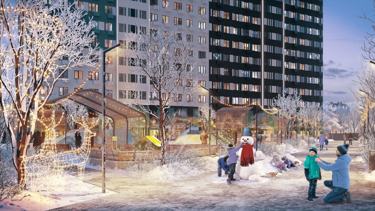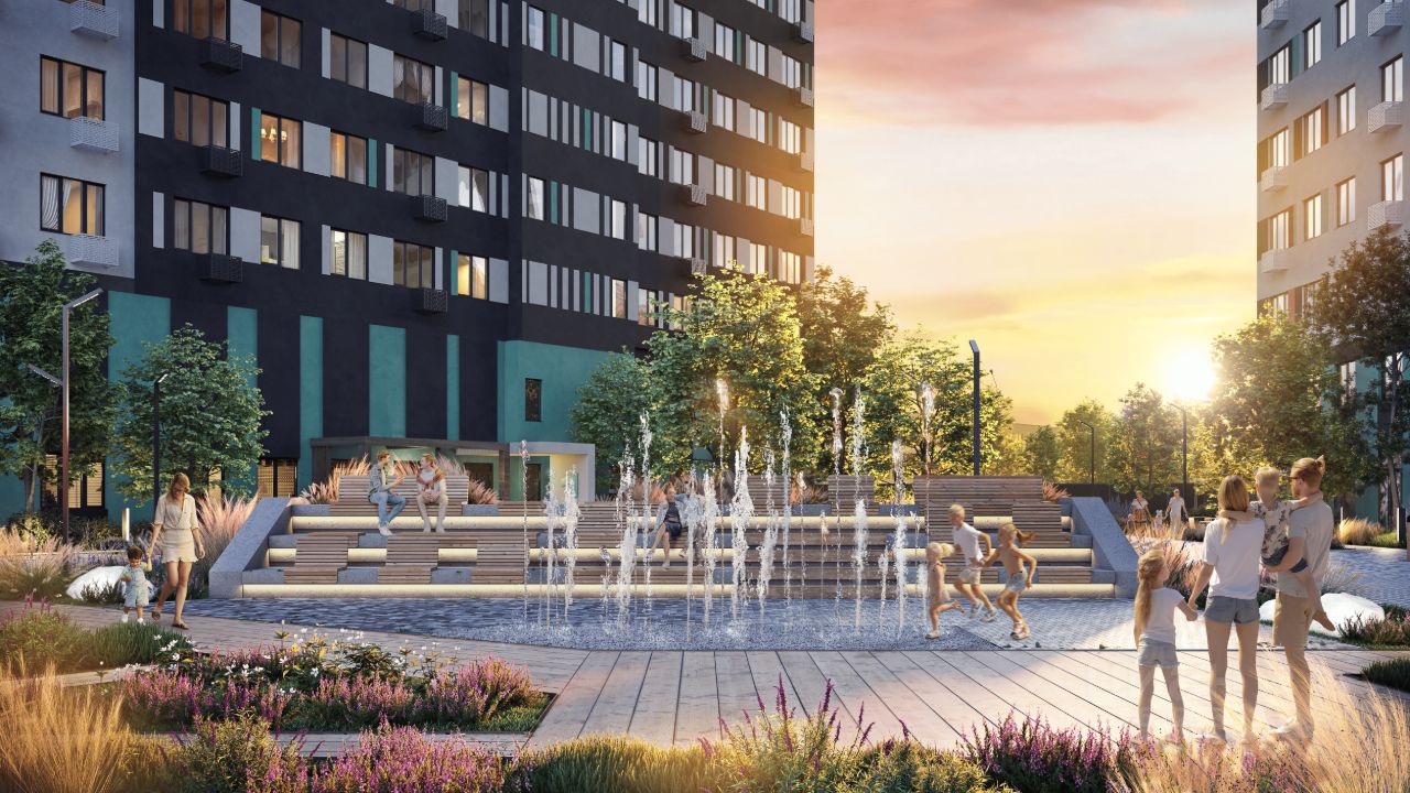В просторном внутреннем дворе под тенью больших деревьев каждый найдёт себе развлечение на свежем воздухе: зоны отдыха, площадка для настольных игр, зиплайн, экодорожки, детские площадки для разных возрастов, амфитеатр с контактным фонтаном позволят проводить время с семьёй и встречаться с друзьями, не выходя за пределы квартала.