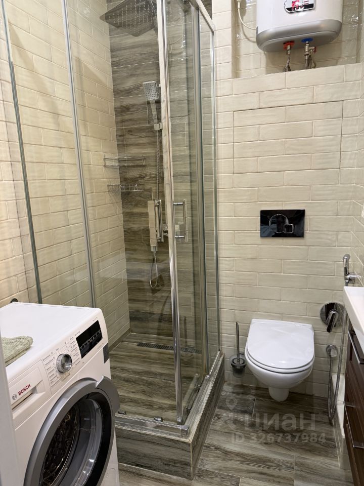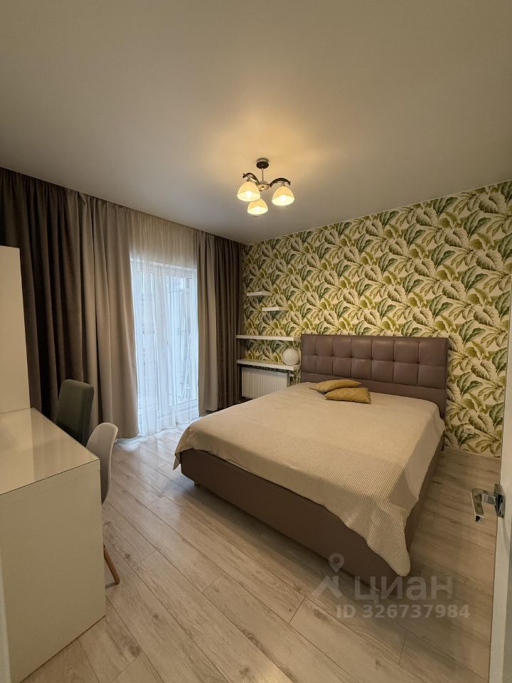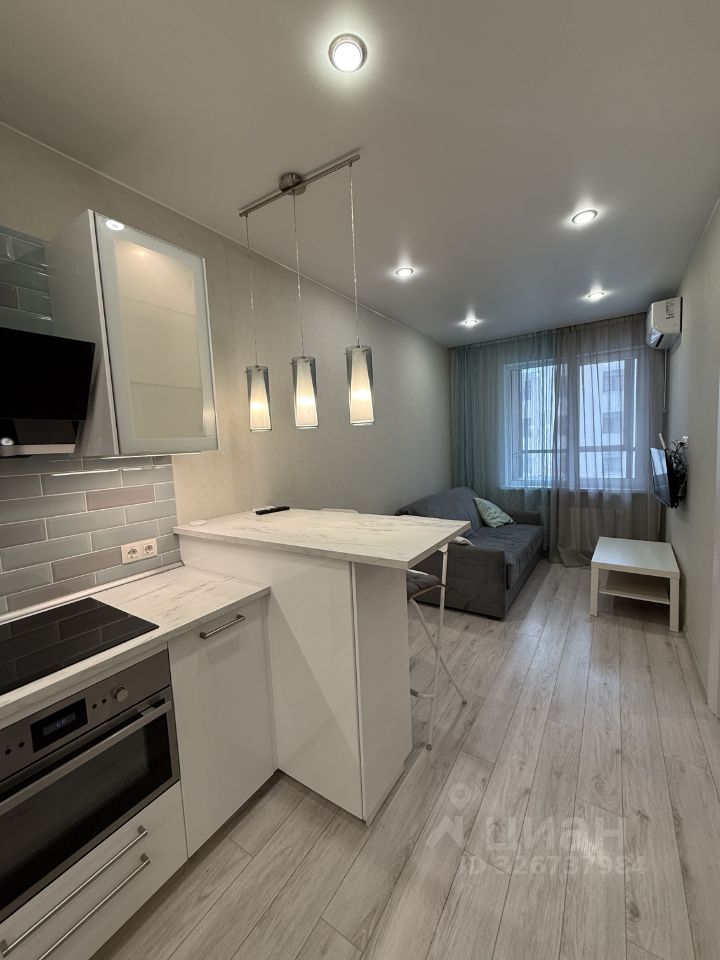 Полностью оборудована мебелью и техникой: посудомоечная и стиральная машины, кондиционер, телевизор, духовка, бойлер для горячей воды. Двуспальная кровать с ортопедическим матрасом 160см, раскладной диван в кухне-гостиной. В квартире имеется панорамный балкон.