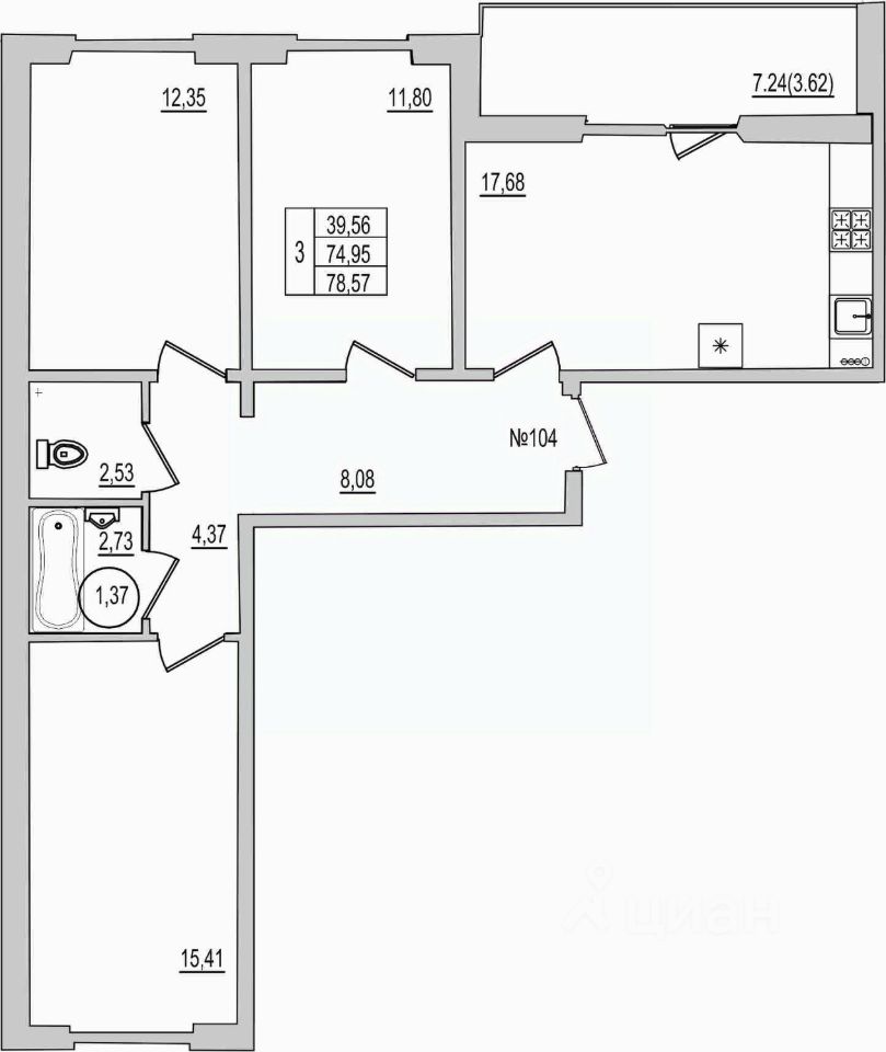Продаётся 3-комнатная квартира в строящемся доме (Дом 94Д), срок сдачи: III-кв. 2027, общей площадью 78.57 кв.м., на 1 этаже. Новый жилой комплекс ''Семь сезонов'' от застройщика ''ЛУГ''