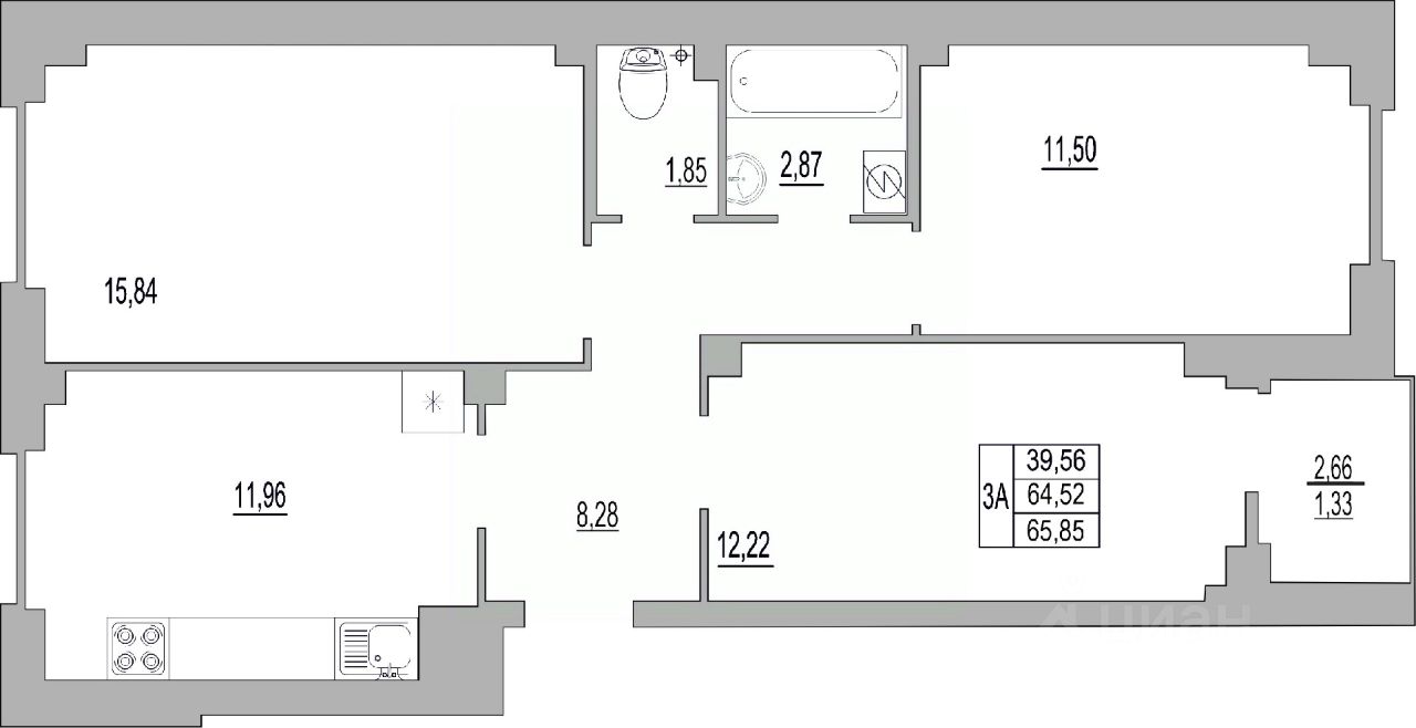 Продаётся 3-комнатная квартира в сданном доме (Дом 32 (1 этап)), срок сдачи: IV-кв. 2025, общей площадью 65.85 кв.м., на 2 этаже. Строительство многоквартирных жилых домов на улице Юности.