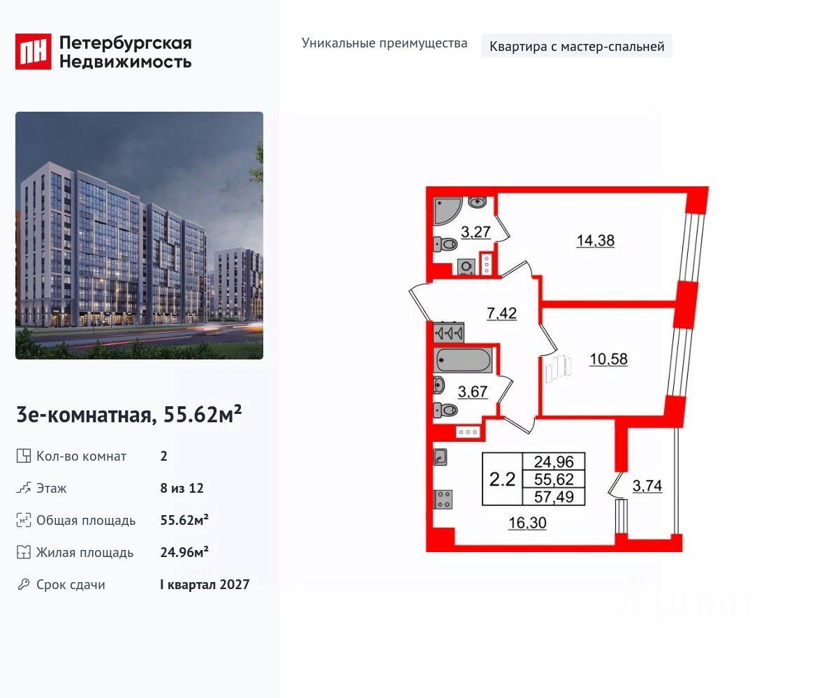 продам 2-к, Орлово-Денисовский проспект, 20 корп. 217 000 336 ₽