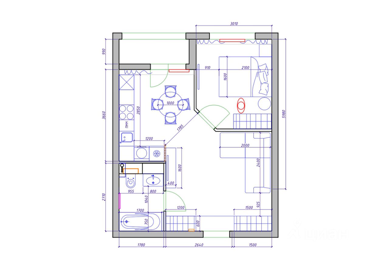 В квартире есть вся необходимая мебель и техника (поудомойка, стиральная машина, духовка, тв и т.п.), котрая остается новому собственнику. В квартире установлен бойлер. Пол в санузле с подогревом. Квартира теплая и уютная. Окна в тихую часть - во двор. Всего 5 квартир на этаже.