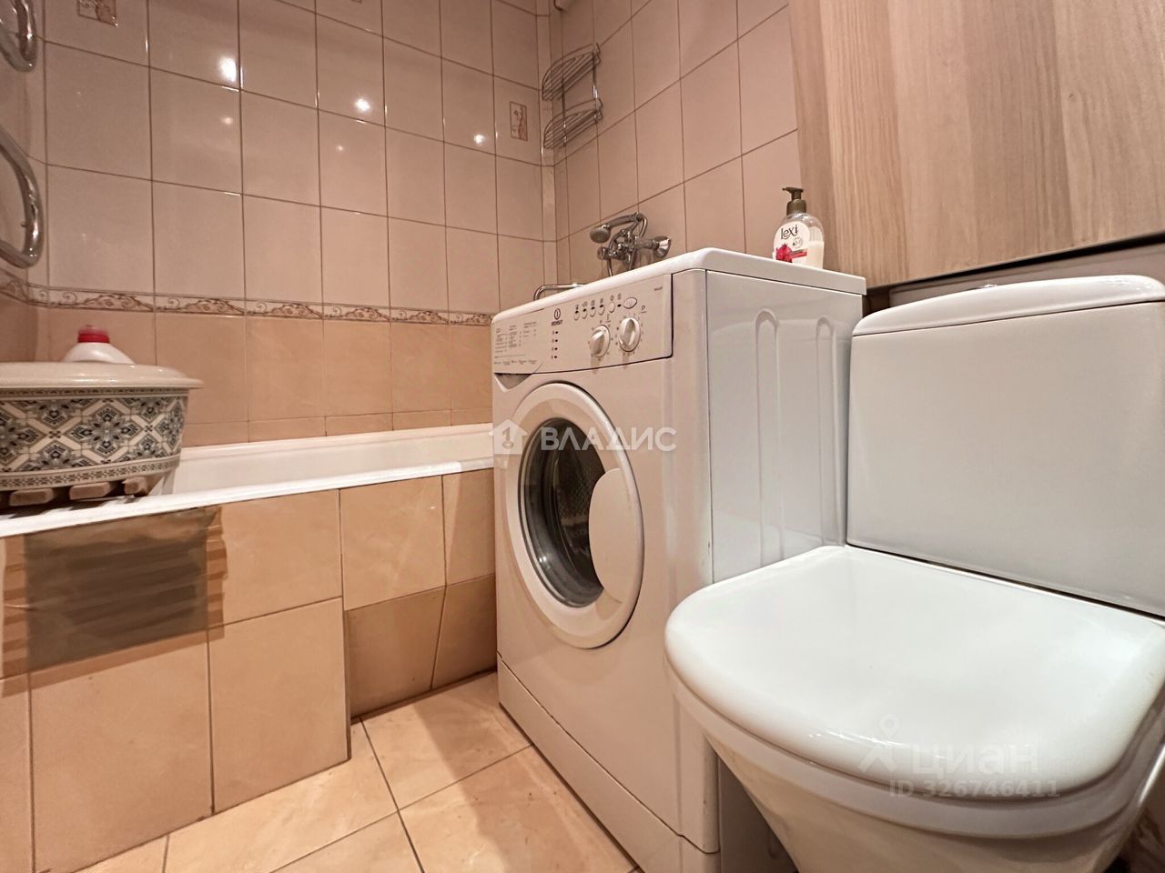 Санузел совмещенный, в нем установлена качественная чугунная ванна, которая отлично сохраняет тепло, а также стиральная машина, что делает повседневную жизнь более удобной.