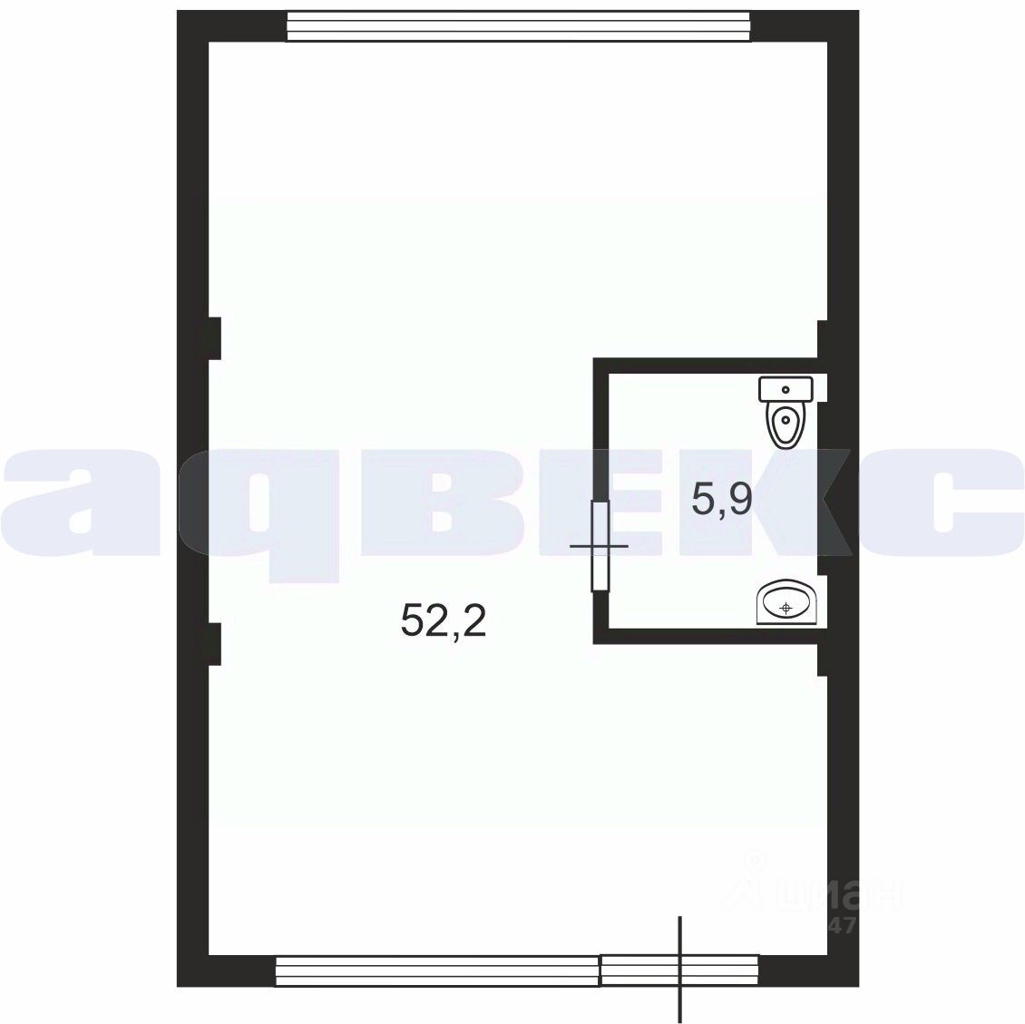 Общая площадь58,1 м2