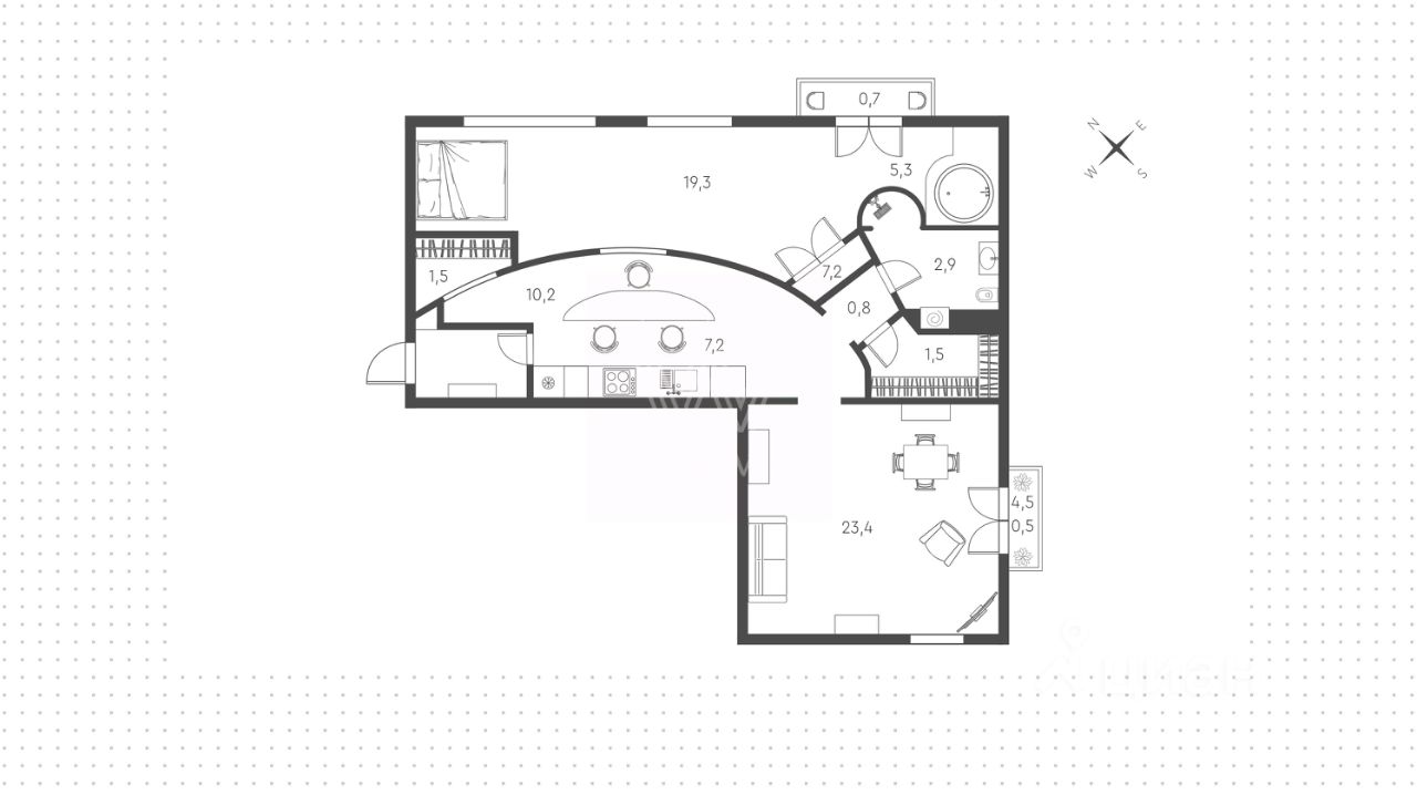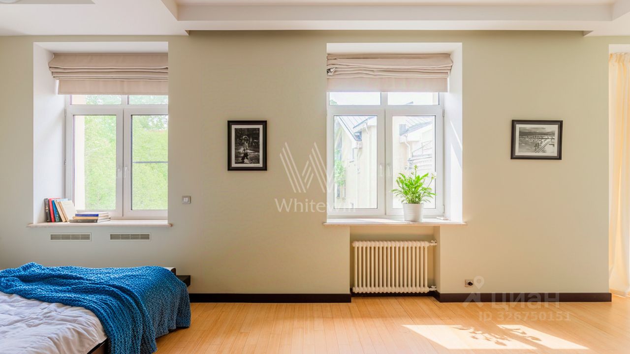 Квартира укомплектована мебелью и бытовой техникой. Функциональная планировка включает гостиную с выходом на балкон и видом на набережную, спальню с уютным балконом и видом во двор, кухню, ванную комнату и две гардеробные. Окна ориентированы на две стороны: на Москву-реку и во двор.