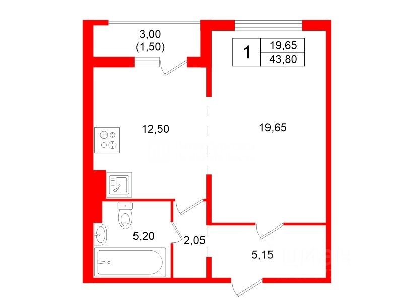 Общая площадь квартиры 43,8м2, комната 19,65м2, кухня-гостиная 12,5м2. Просторная прихожая , с зеркальным вместительным шкафом, 5,15м2. В квартире остается мебель и бытовая техника. Есть подземный паркинг, где всегда можно арендовать место , а также можно припарковаться во дворе.