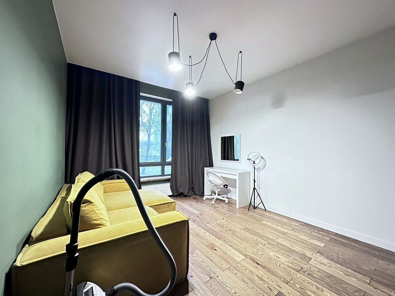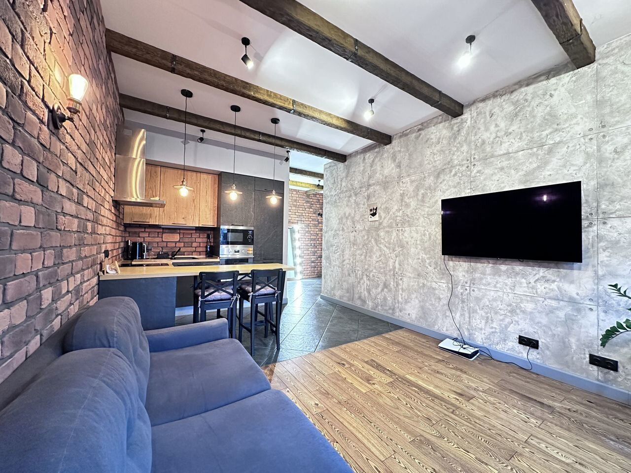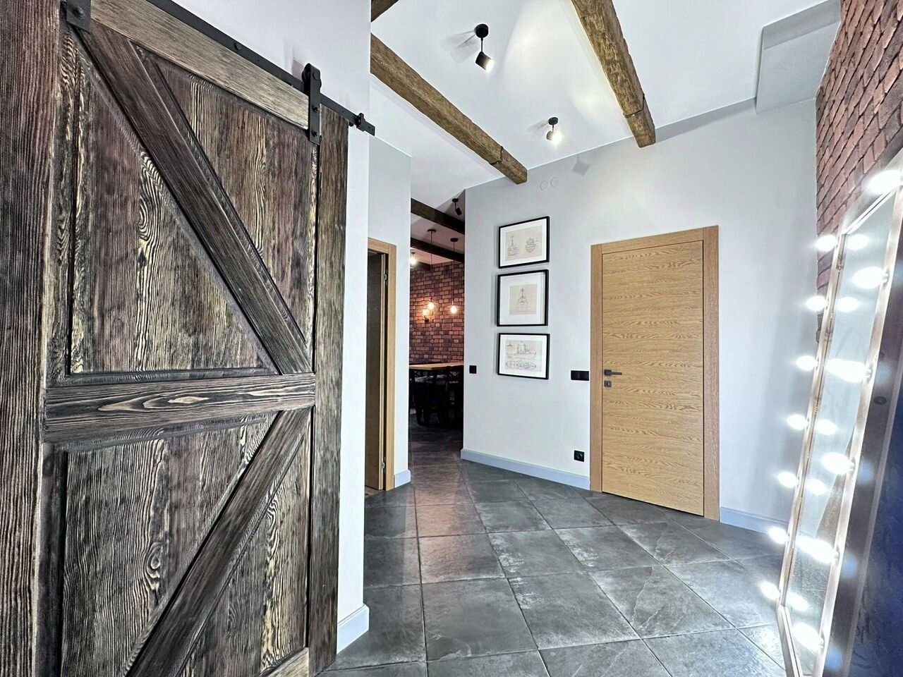 Интерьер квартиры сочетает в себе элементы лофта и хай-тека, что идеально подходит для тех, кто ценит практичность и функциональность. Грубая индустриальная отделка гармонирует с современными элементами и техникой. В отделке использованы металл, стекло и натуральное дерево. Четкие линии и простые геометрические формы создают минималистичный и стильный облик, а обилие света (как естественного, так и искусственного) наполняет пространство жизнью.