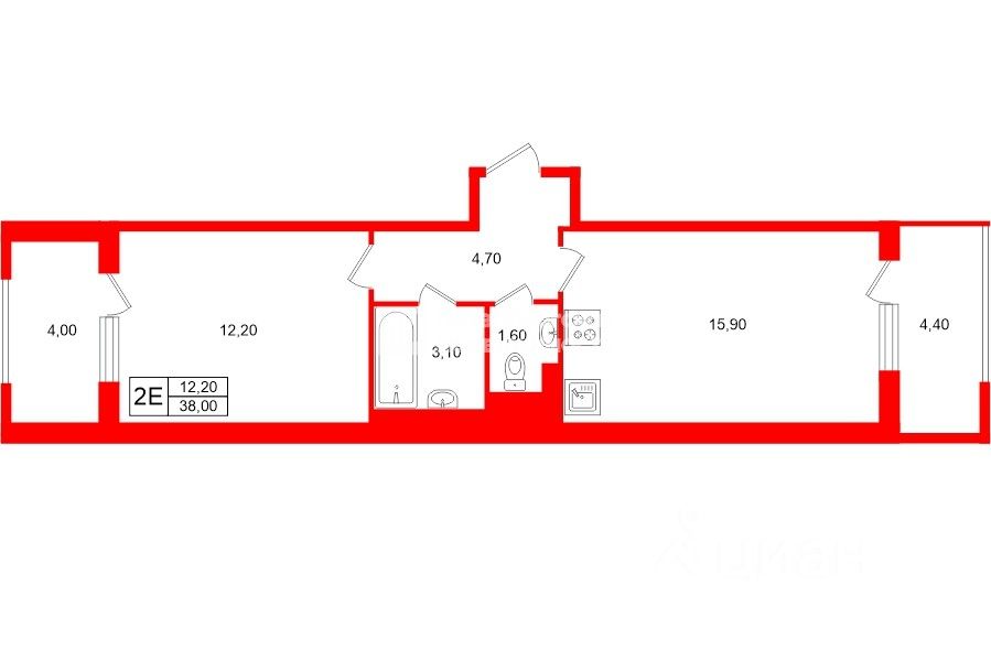 Общая площадь квартиры 38 кв.м, квартира двухсторонняя, окна выходят во двор и на тихую улицу. В просторной кухне, площадью 16 кв. м возможно обустроить кухню-гостинную. В квартире 2 просторные лоджии, площадью 4,4 (выход из кухни) и 4 кв.м (выход из комнаты 12,2 кв.м).