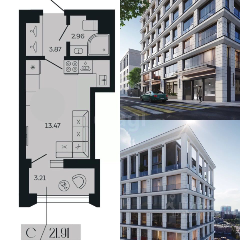 Продается студия площадью 21,91 кв.м в клубном доме ''1919'' на Московском проспекте. Объект сдан с чистовой отделкой ''Бетон'' от застройщика, что обеспечивает готовность к заселению и дает свободу для реализации индивидуального дизайна. Планировка включает основное пространство 13,47 кв.м и просторную лоджию 3,21 кв.м, которую можно функционально использовать. Ключевое преимущество — высота потолков 3 метра, создающая ощущение простора и объема даже в компактной студии. В доме всего 68 квартир, что гарантирует камерность и приватность.