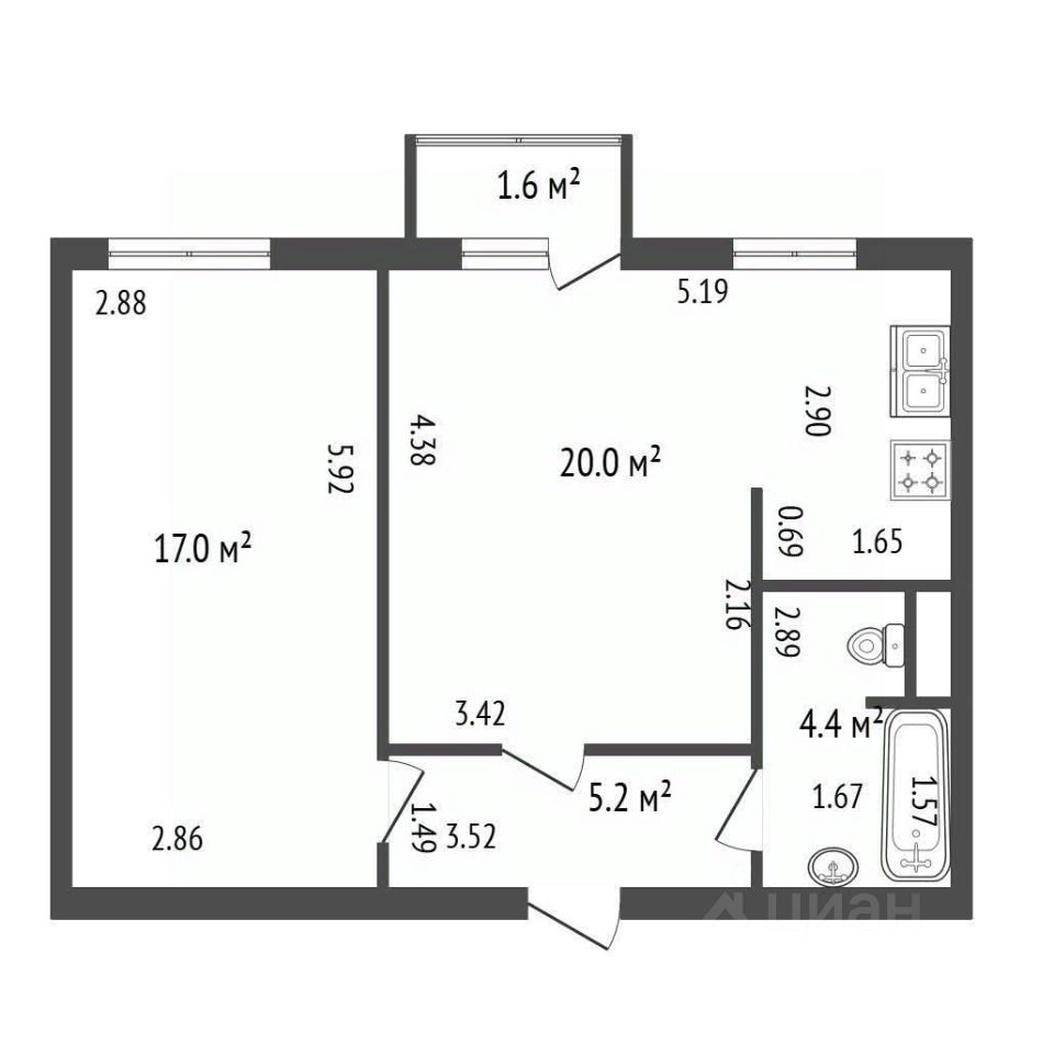 Просторная кухня-гостиная для жизни, а не для разворота Изолированная спальня — тишина и privacy Раздельный санузел Ничего лишнего, но есть всё необходимое