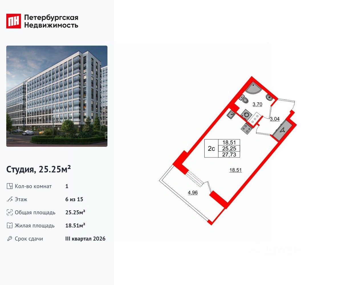 Общая площадь25,25 м2